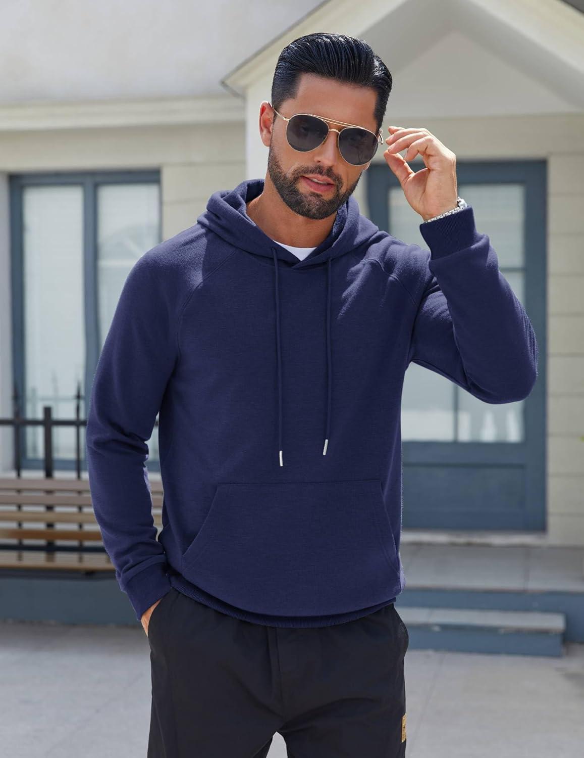 COOFANDY Men's Fleece Hoodie Long Sleeve Hooded Sweatshirt Casual Basic Essential Drawstring Pullover Hoodie With Pocket(Navy Blue)