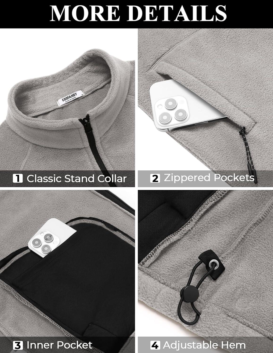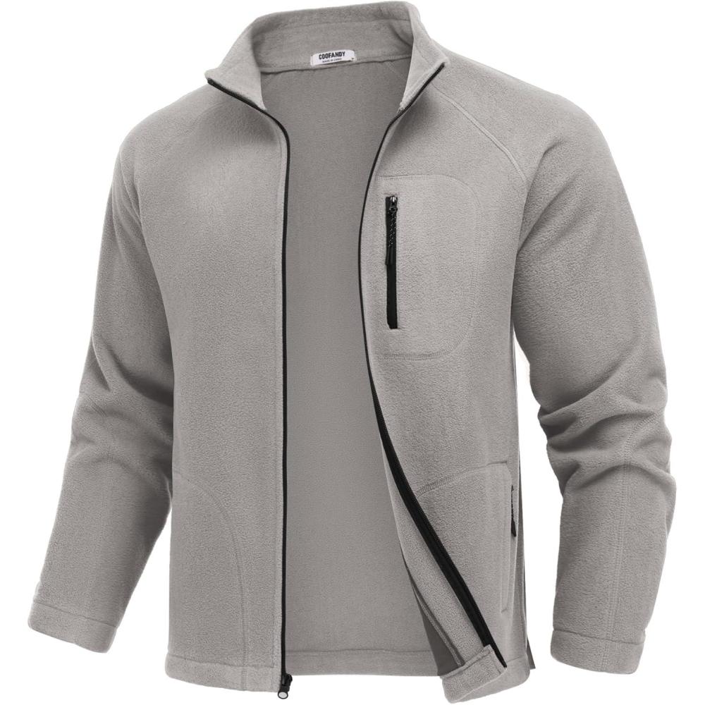 COOFANDY Men’s Fleece Jackets Full Zip Raglan Long Sleeve Lightweight Casual Outdoor Warm Jacket Coat with Pockets(Grey)