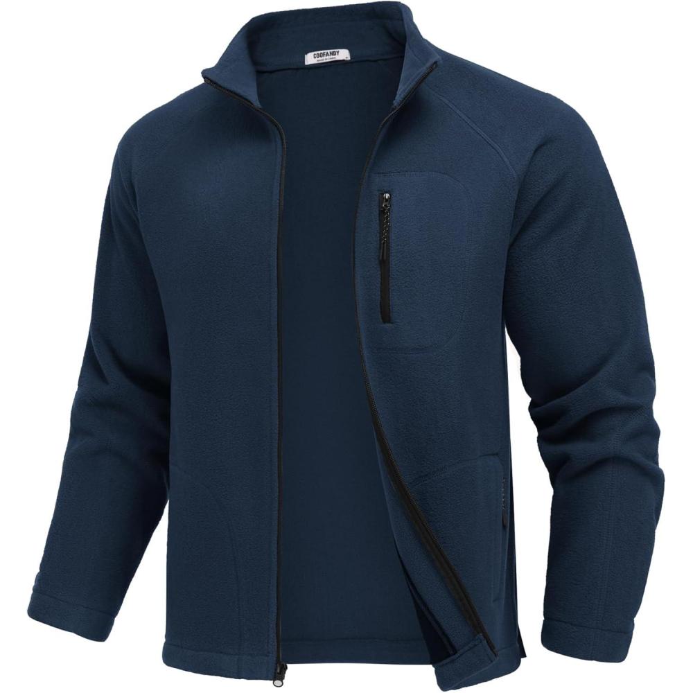 COOFANDY Men’s Fleece Jackets Full Zip Raglan Long Sleeve Lightweight Casual Outdoor Warm Jacket Coat with Pockets(Navy Blue)