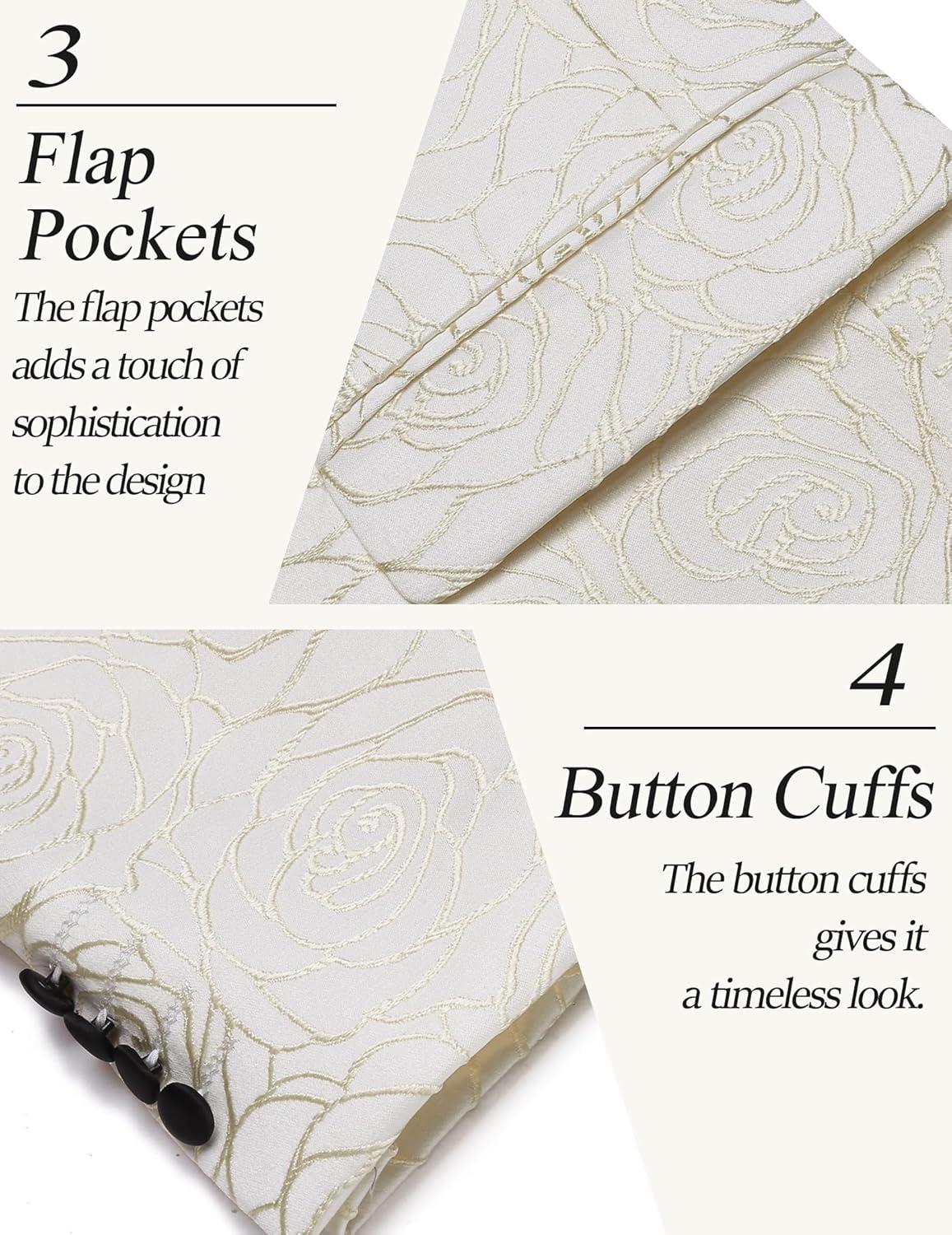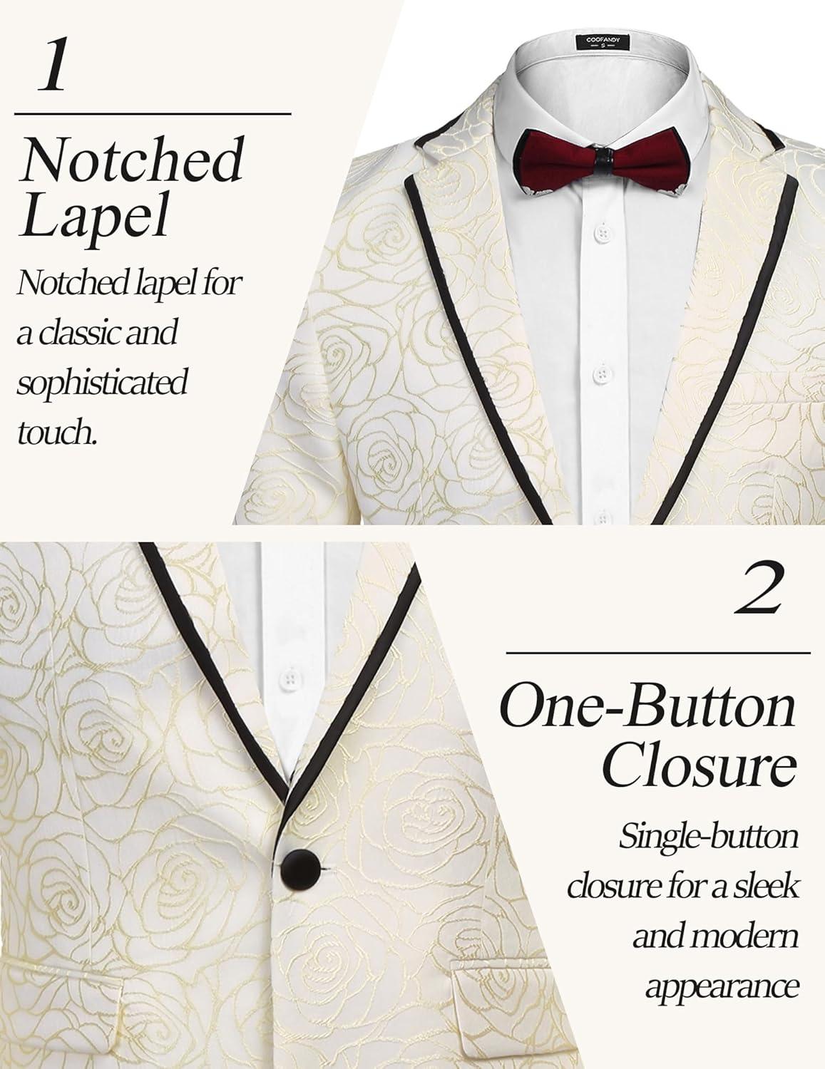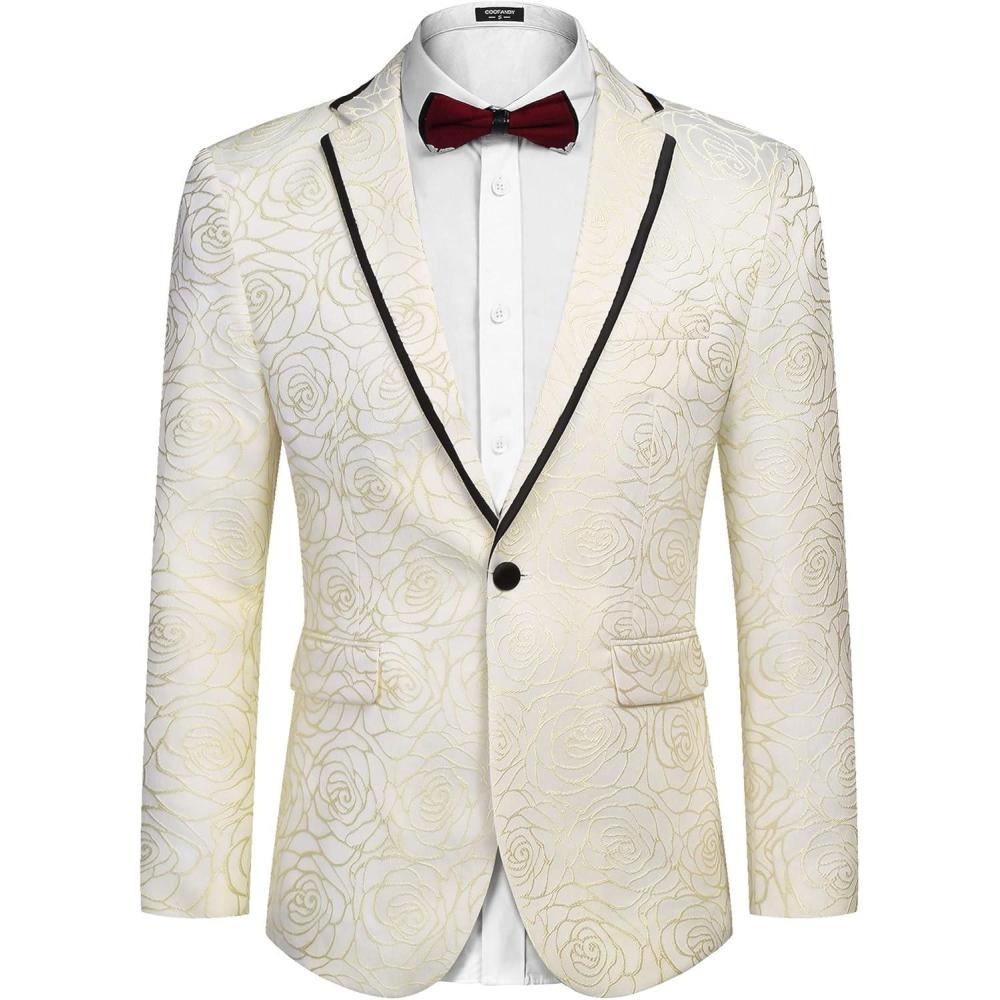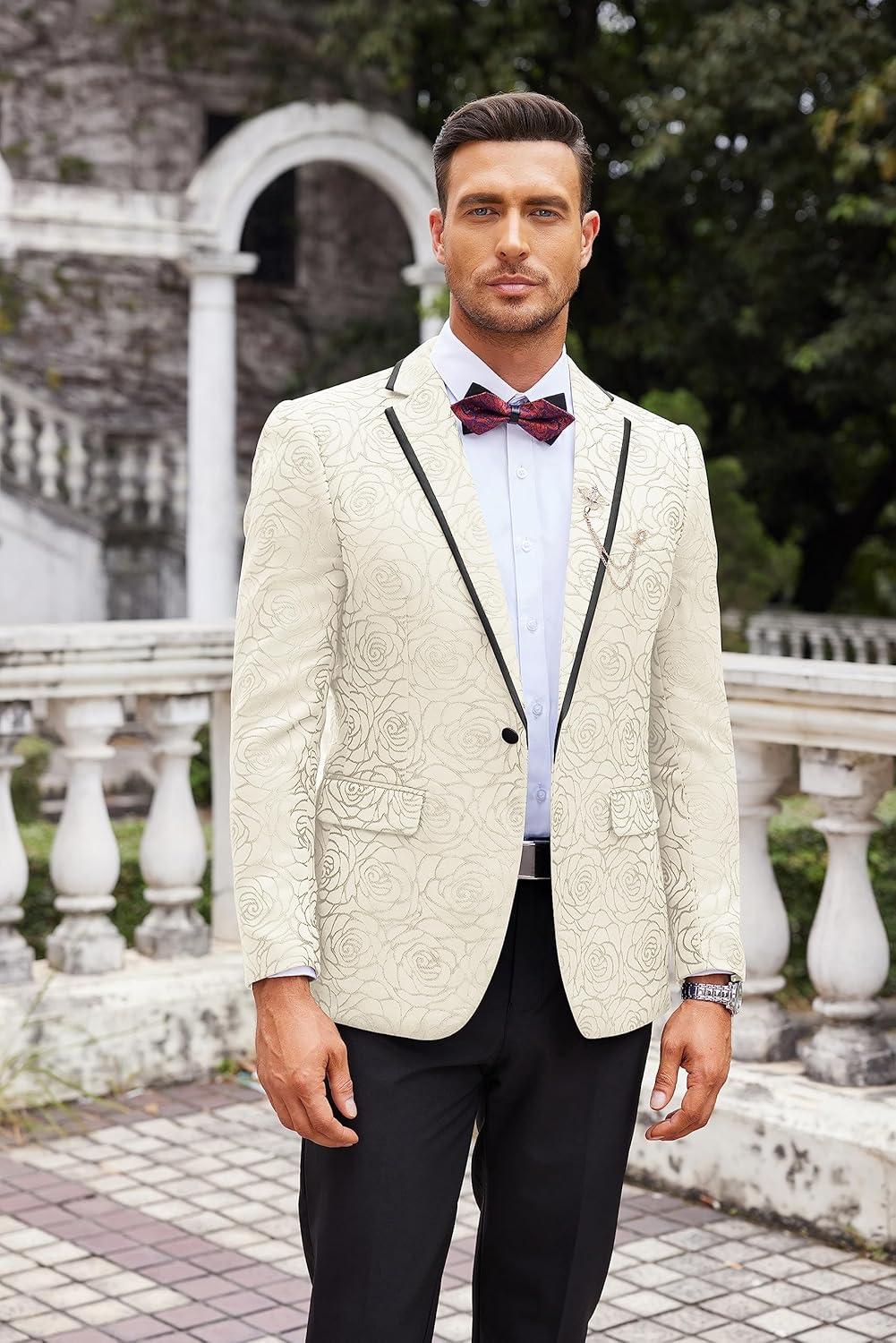 COOFANDY Men’s Rose Floral Embroidered Fashion Suit Jacket Blazer Weddings Prom Party Dinner Tuxedo