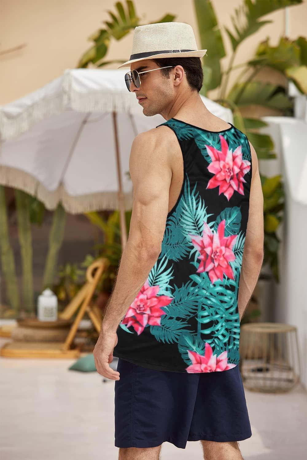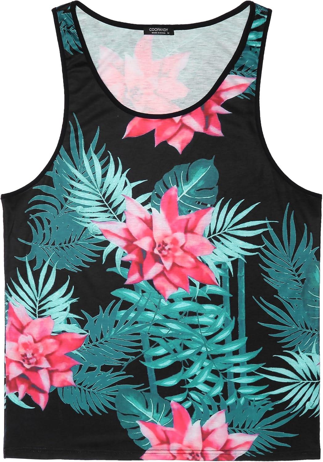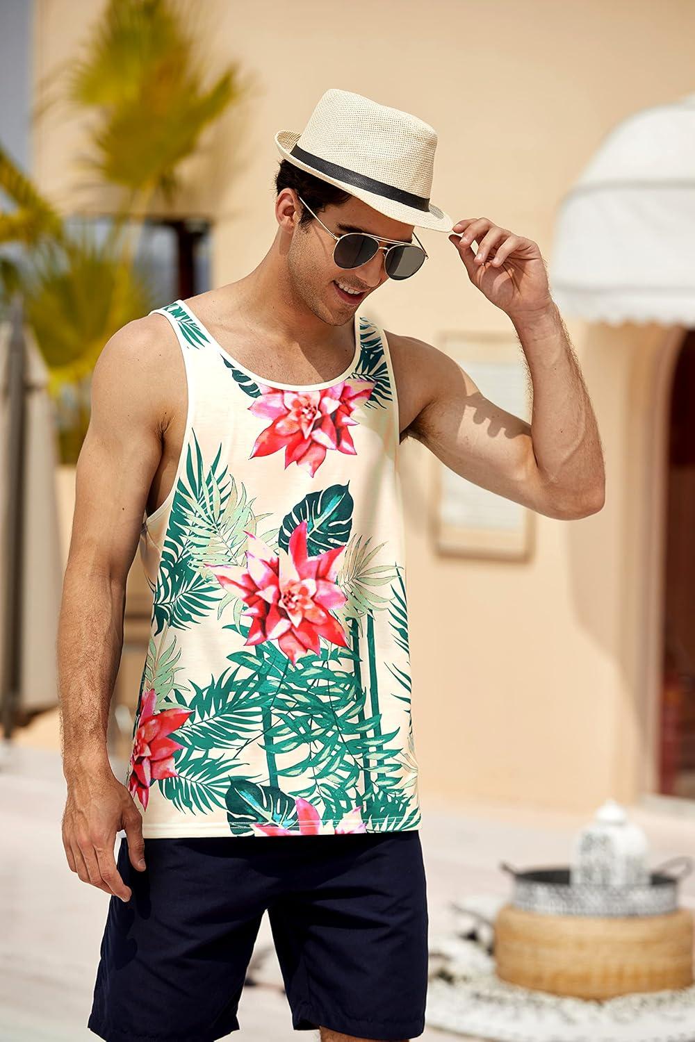 COOFANDY Men’s Floral Tank Top Sleeveless Tees All Over Print Casual Sport T-Shirts Hawaii Beach Vacation(White)