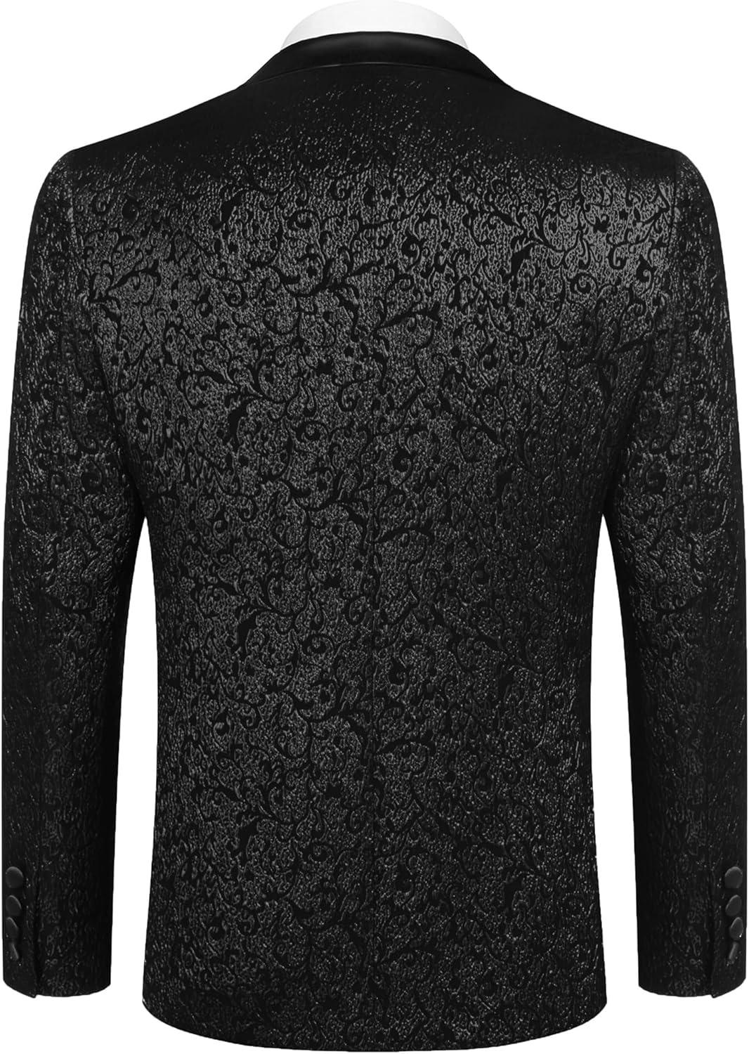 COOFANDY Men's Floral Tuxedo Jacket Jacquard Suit Jacket Slim Fit Blazer for Wedding, Prom, Dinner(Type02-black)