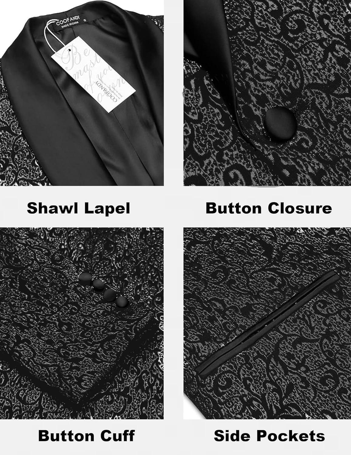 imageCOOFANDY Mens Floral Tuxedo Jacket Jacquard Suit Jacket Slim Fit Blazer for Wedding Prom DinnerType02black