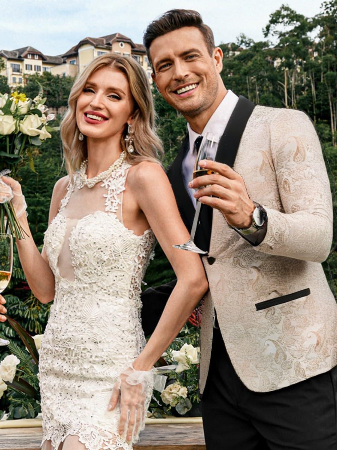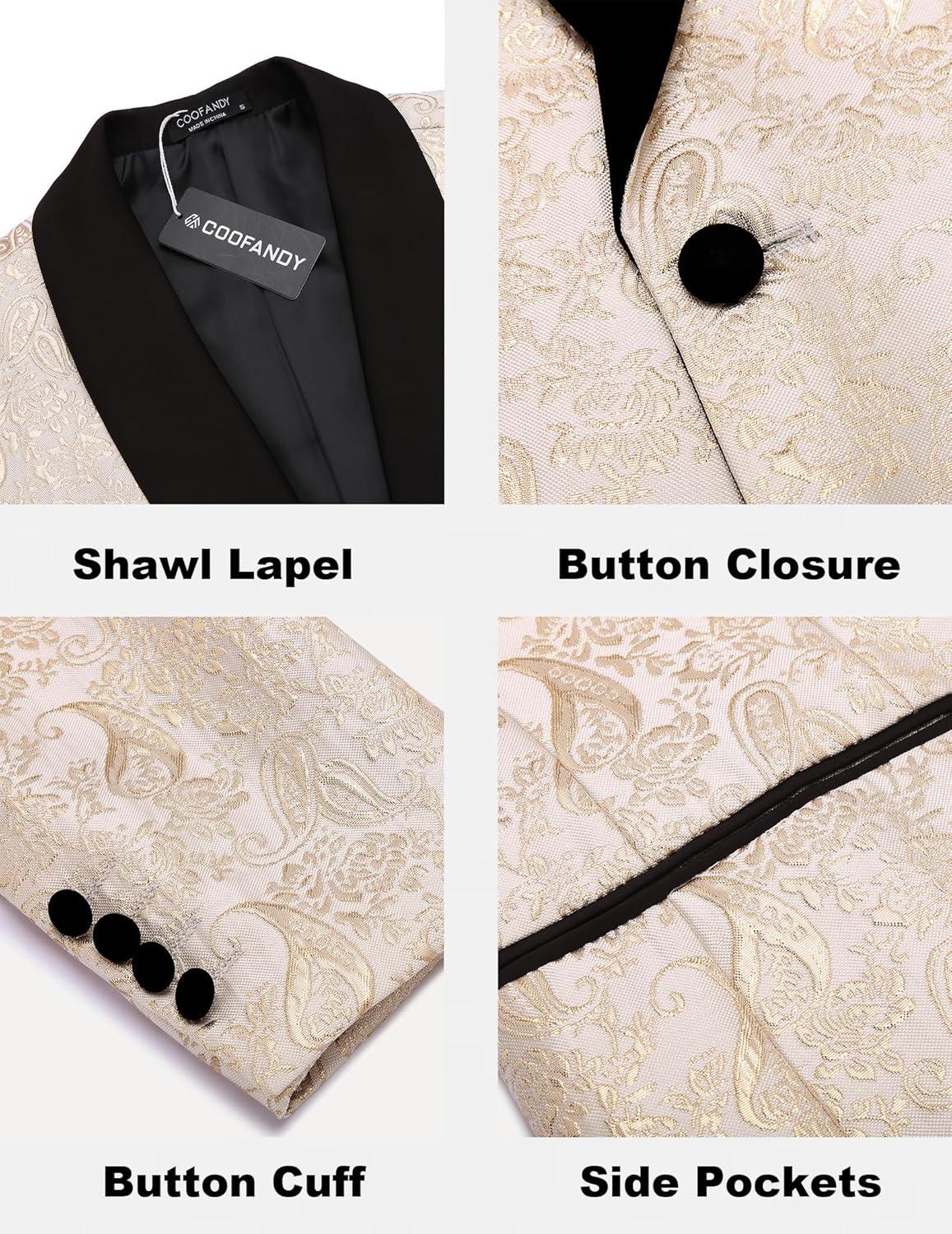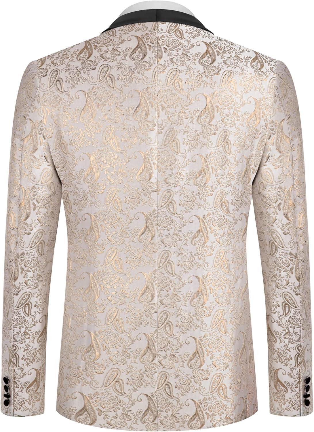 COOFANDY Men's Floral Tuxedo Jacket Jacquard Suit Jacket Slim Fit Blazer for Wedding, Prom, Dinner(Type02-champagne)
