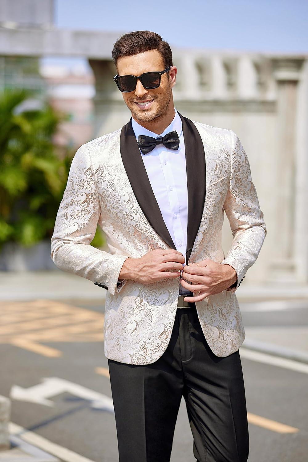 COOFANDY Men’s Floral Tuxedo Jacket Jacquard Suit Jacket Slim Fit Blazer for Wedding, Prom, Dinner(Type02-champagne)