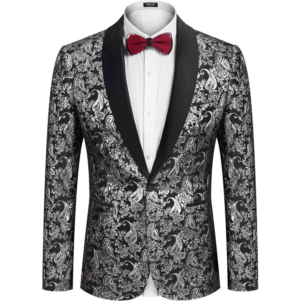 imageCOOFANDY Mens Floral Tuxedo Jacket Jacquard Suit Jacket Slim Fit Blazer for Wedding Prom DinnerType02silver