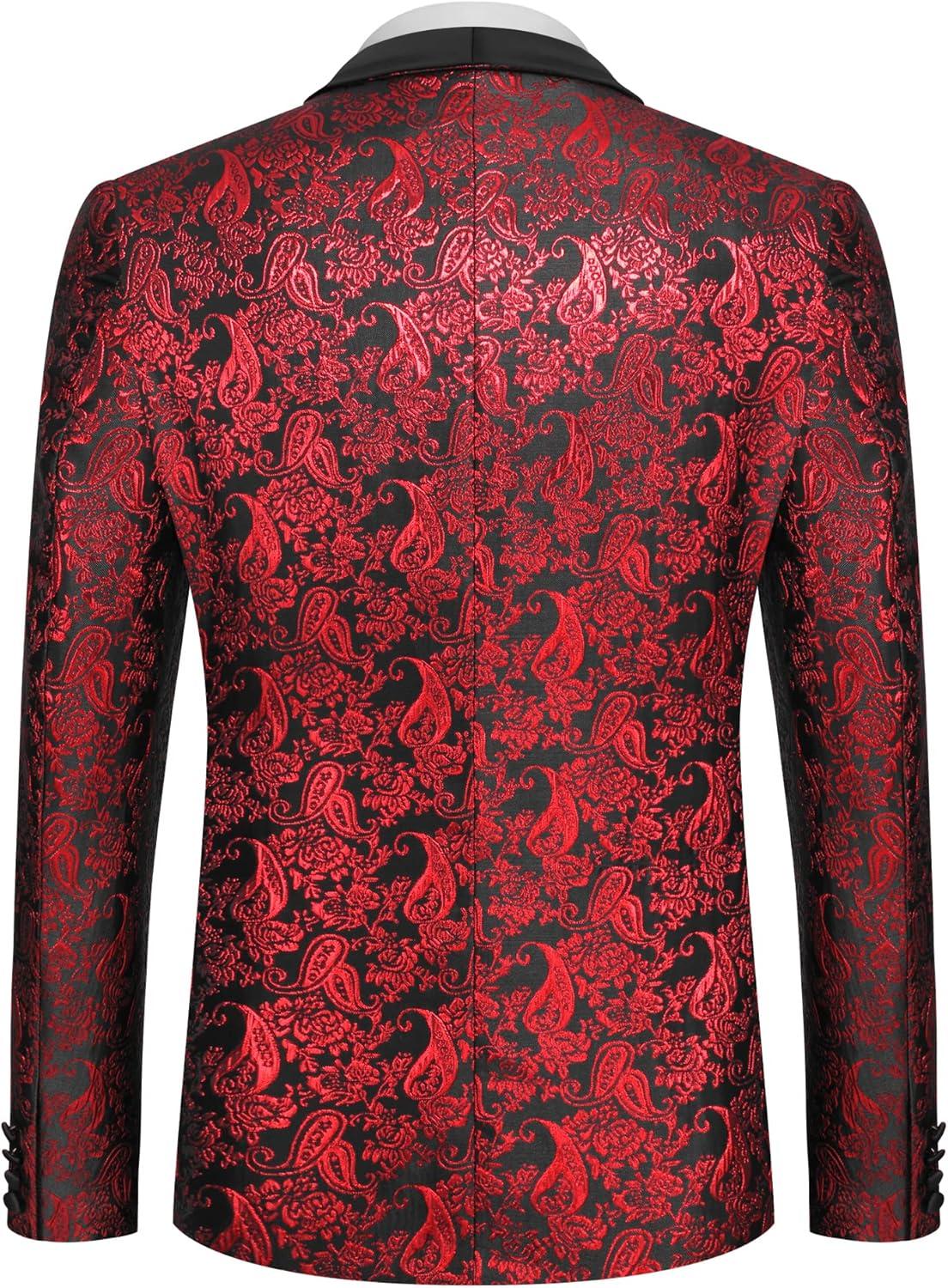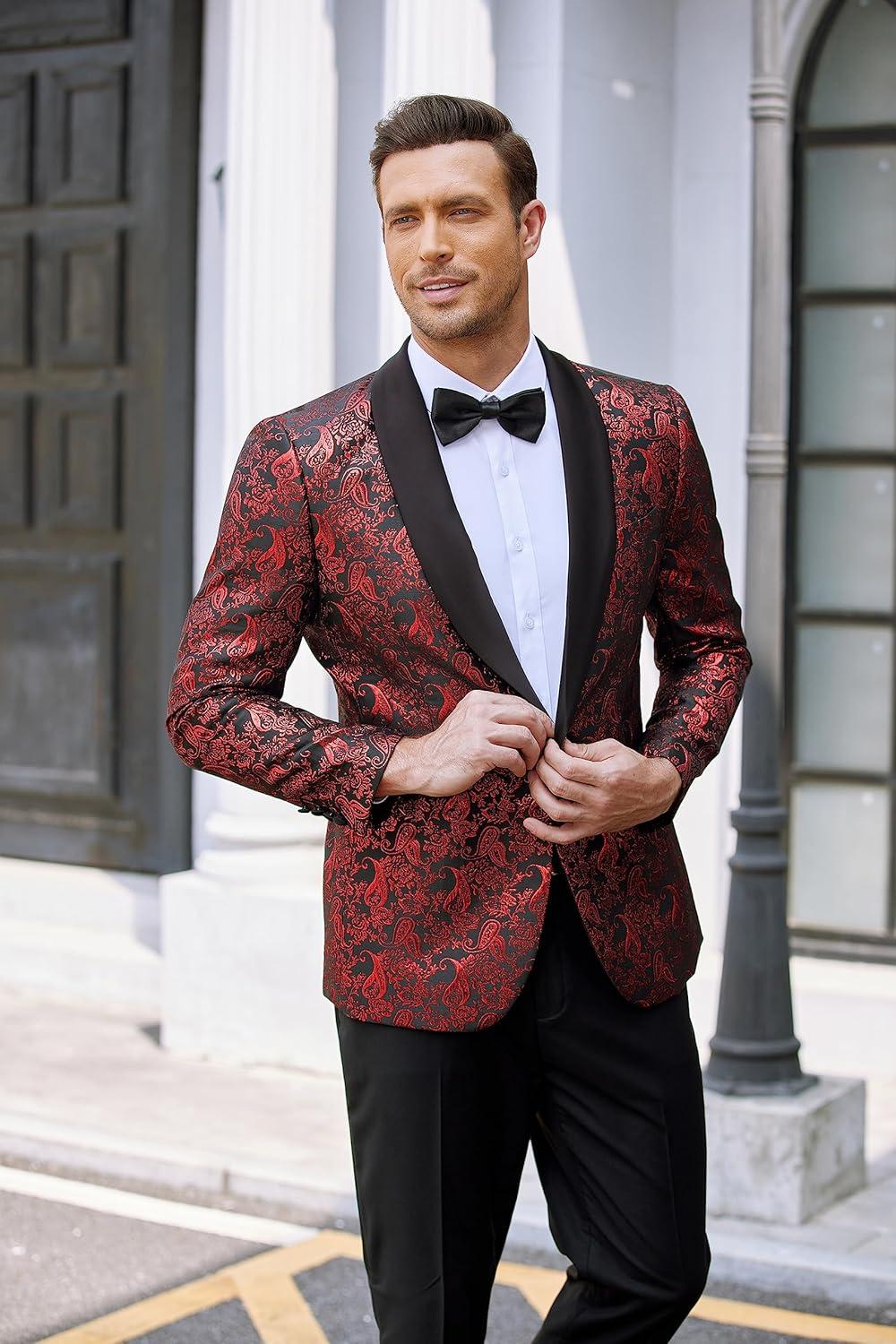 COOFANDY Men's Floral Tuxedo Jacket Jacquard Suit Jacket Slim Fit Blazer for Wedding, Prom, Dinner(Type02-wine Red)