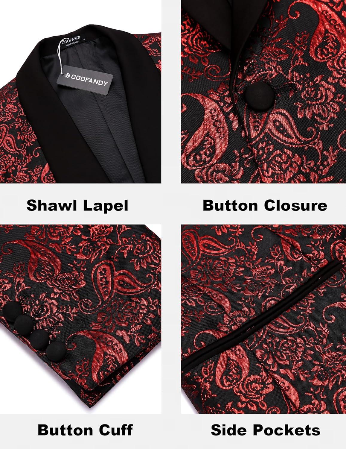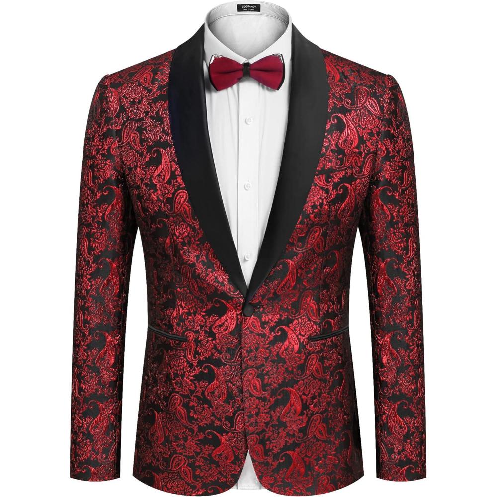 imageCOOFANDY Mens Floral Tuxedo Jacket Jacquard Suit Jacket Slim Fit Blazer for Wedding Prom DinnerType02wine Red