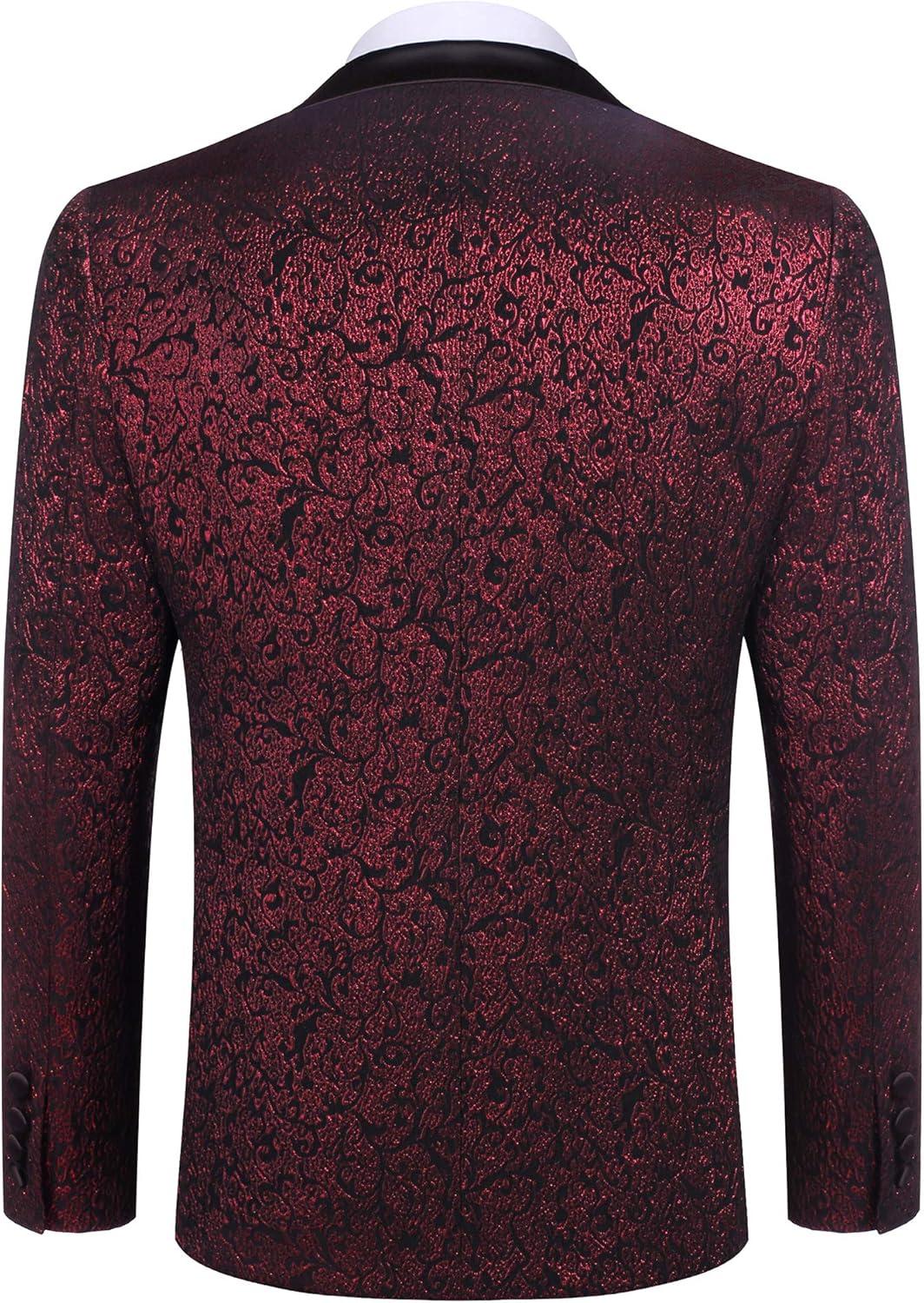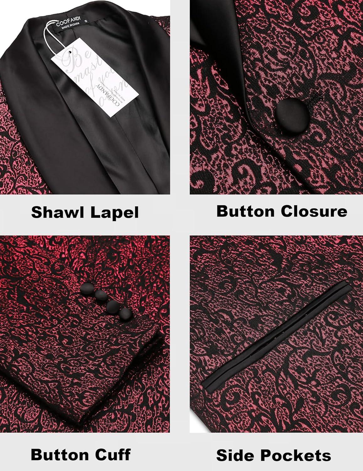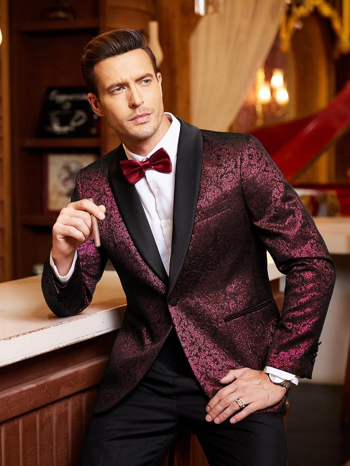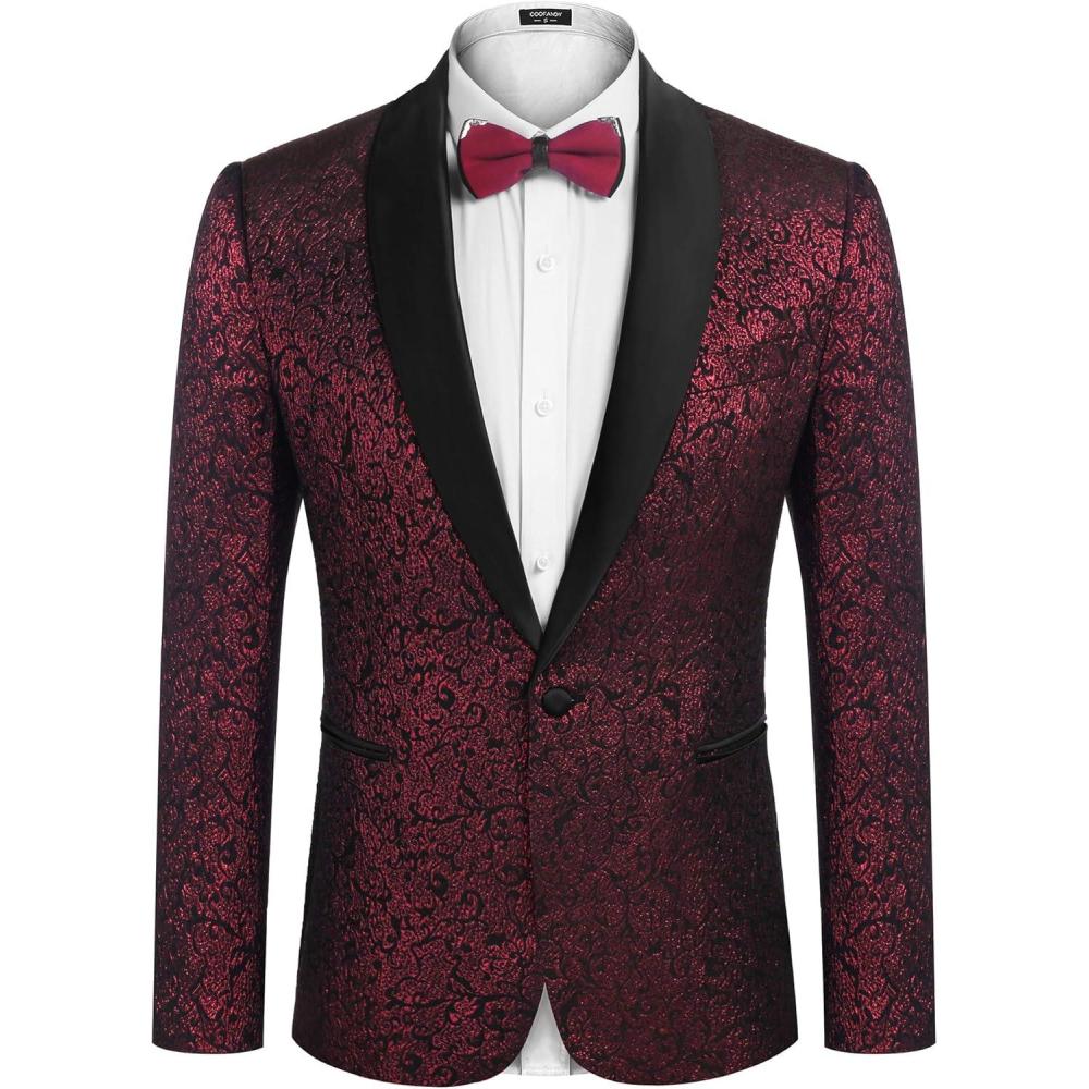 COOFANDY Men's Floral Tuxedo Jacket Jacquard Suit Jacket Slim Fit Blazer for Wedding, Prom, Dinner(Wine Red)