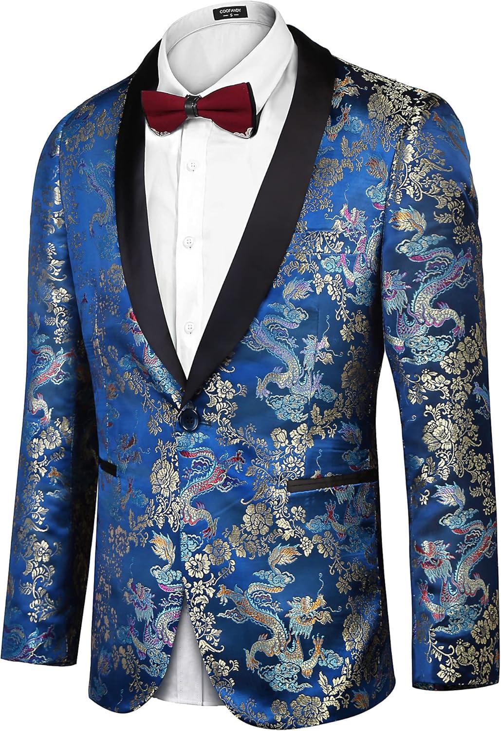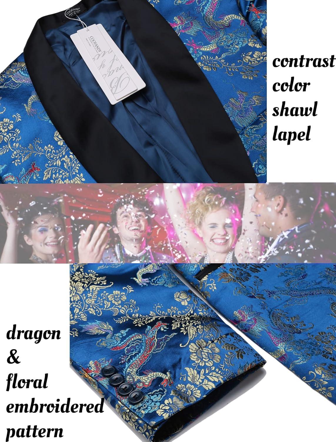 COOFANDY Men's Floral Tuxedo Jacket Luxury Embroidered Stylish Suit Blazer Jacket for Wedding Party Dinner(Dark Blue)