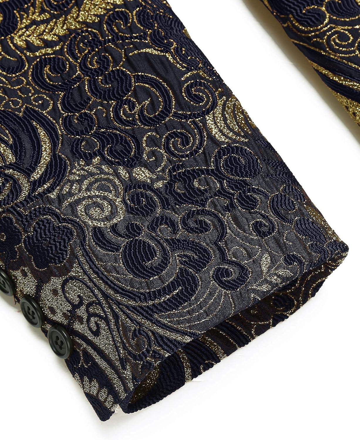 COOFANDY Men’s Floral Tuxedo Jacket Luxury Embroidered Wedding Blazer Dress Suit for Party Dinner(Navy Blue)