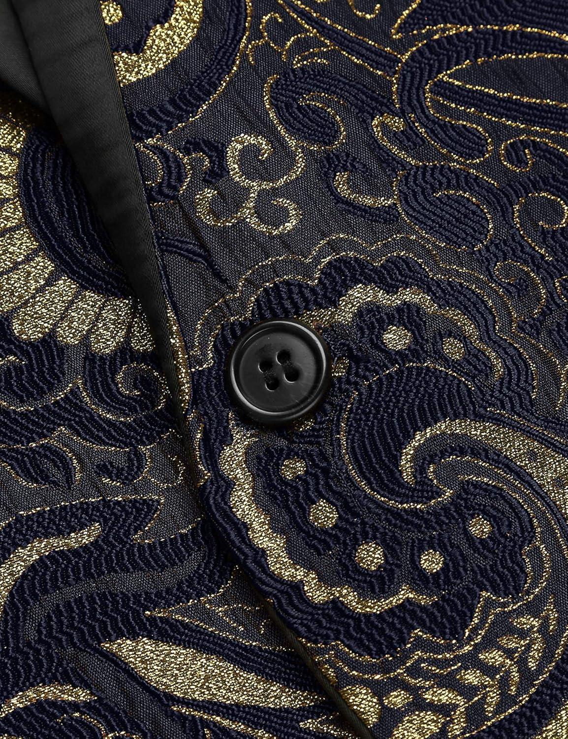COOFANDY Men's Floral Tuxedo Jacket Luxury Embroidered Wedding Blazer Dress Suit for Party Dinner(Navy Blue)