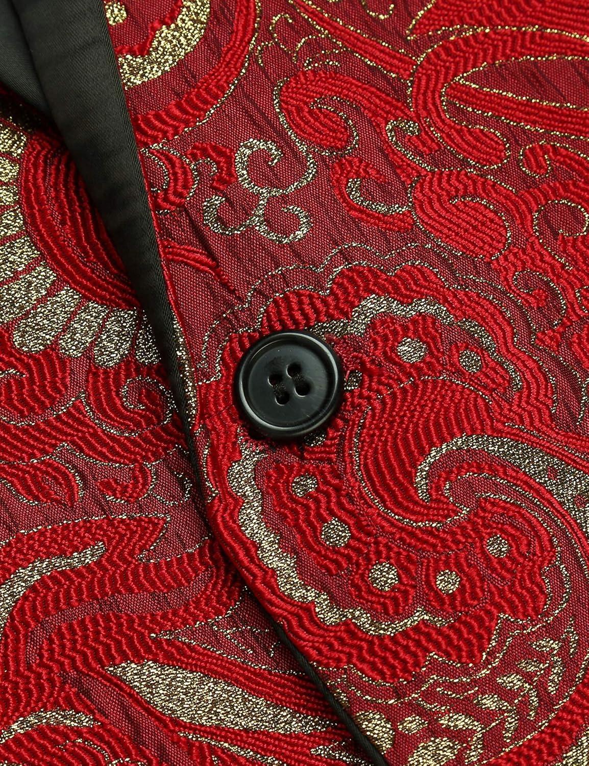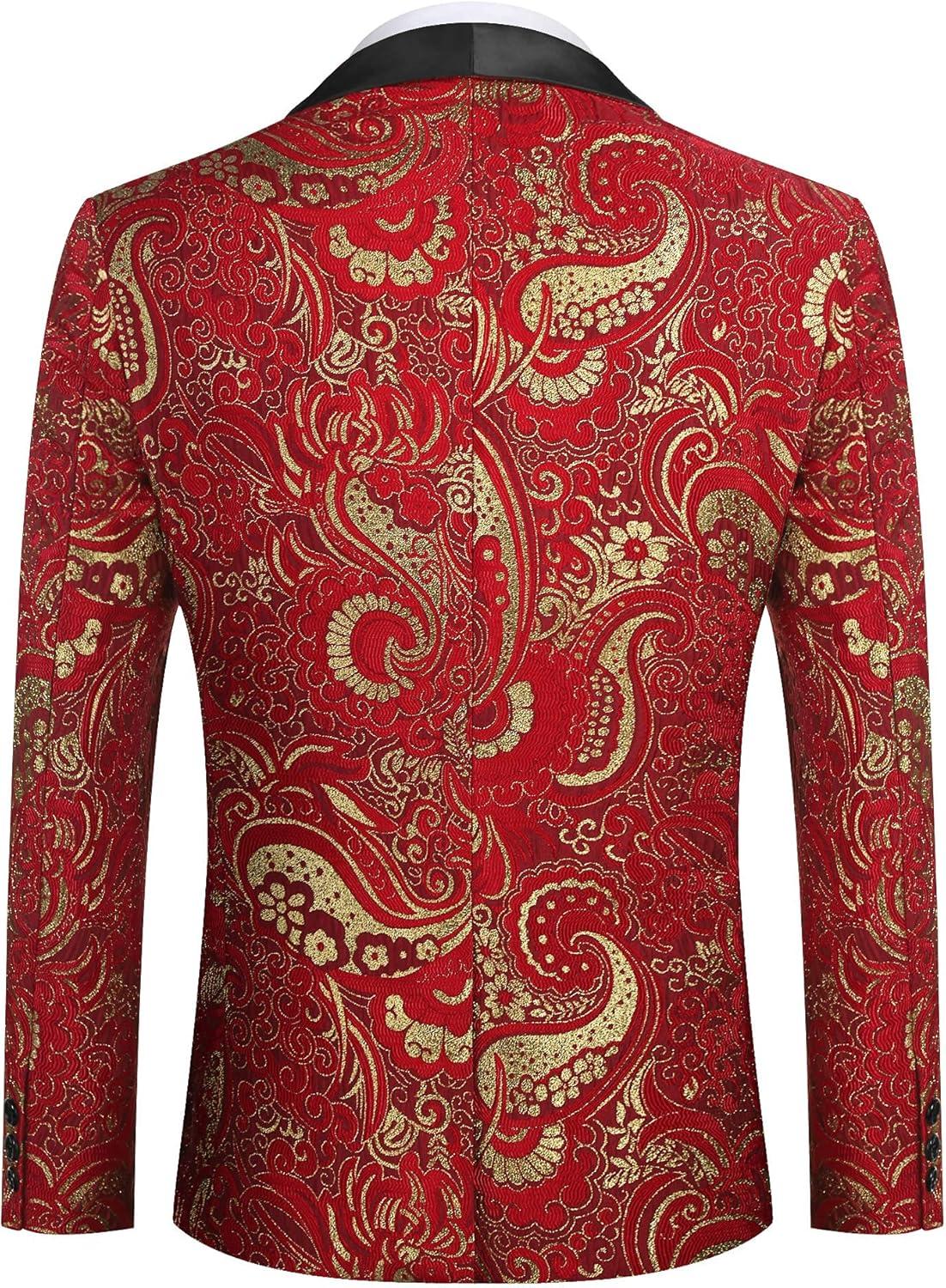 COOFANDY Men's Floral Tuxedo Jacket Luxury Embroidered Wedding Blazer Dress Suit for Party Dinner(Red)
