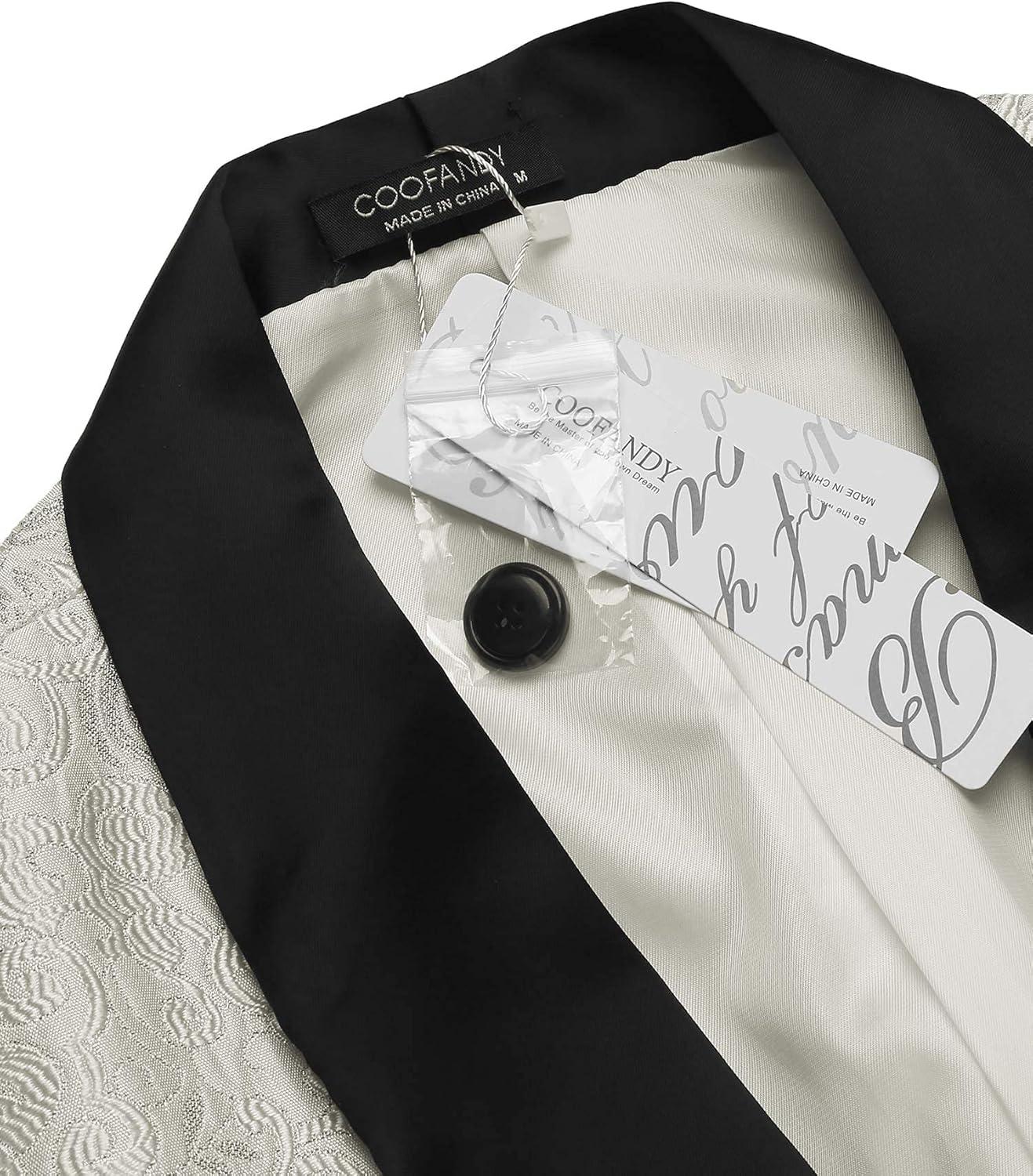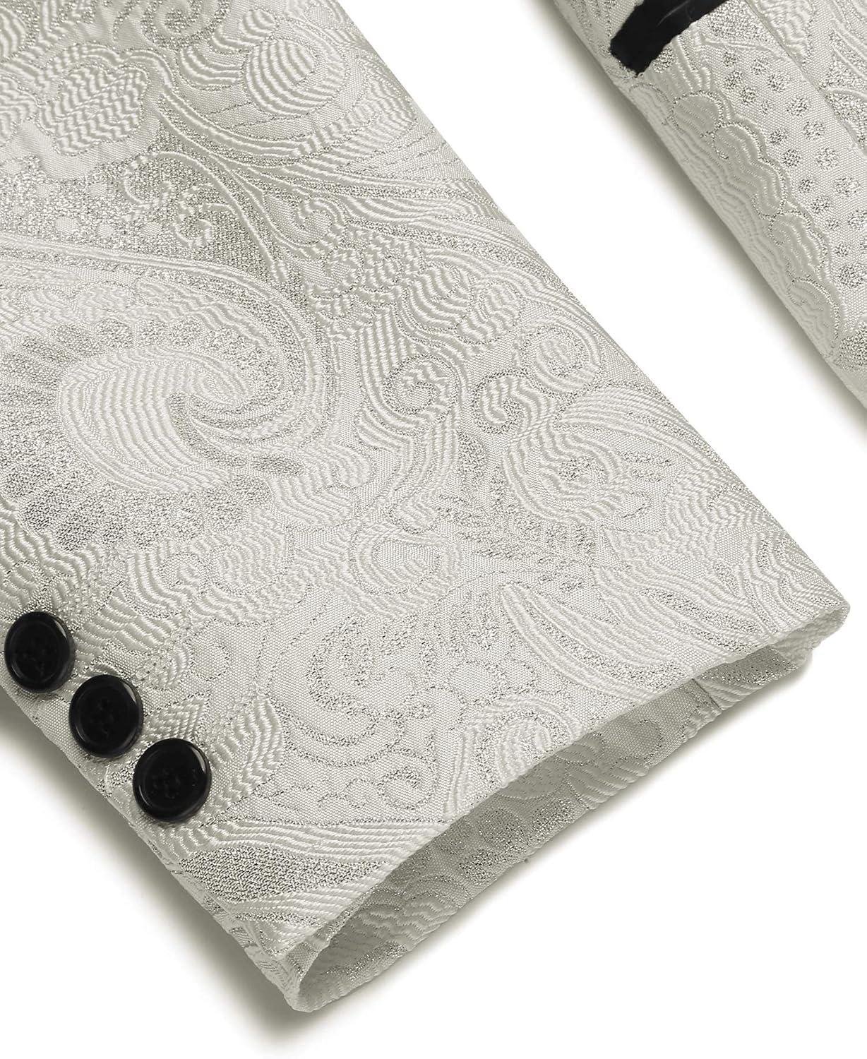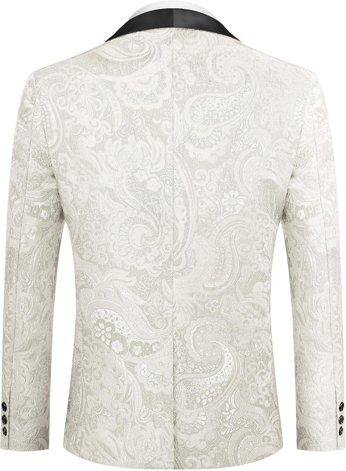 COOFANDY Men's Floral Tuxedo Jacket Luxury Embroidered Wedding Blazer Dress Suit for Party Dinner(White)