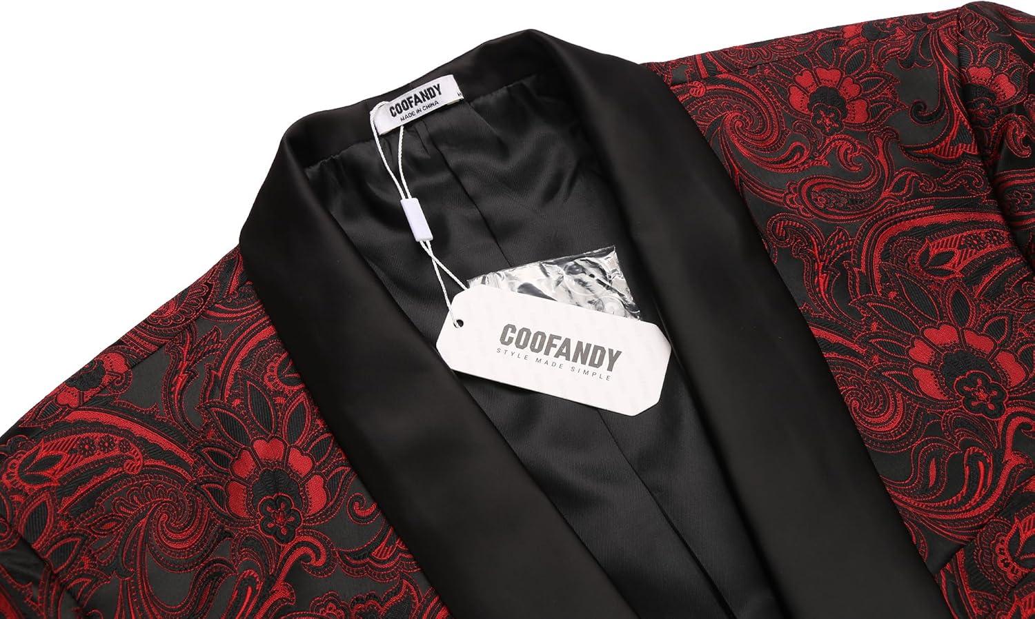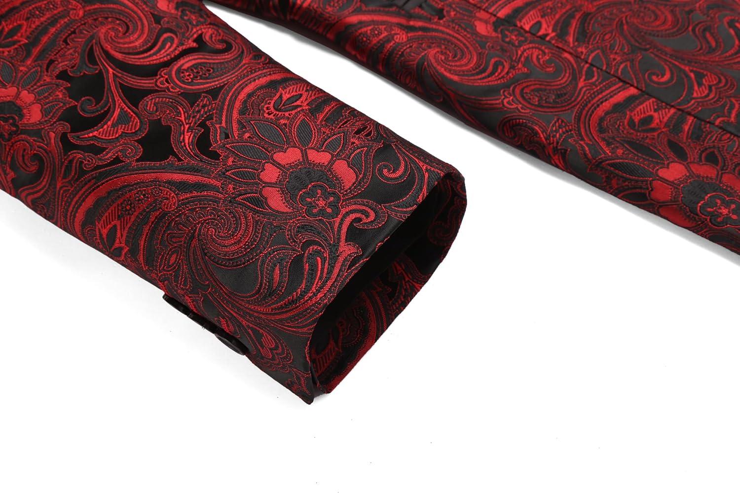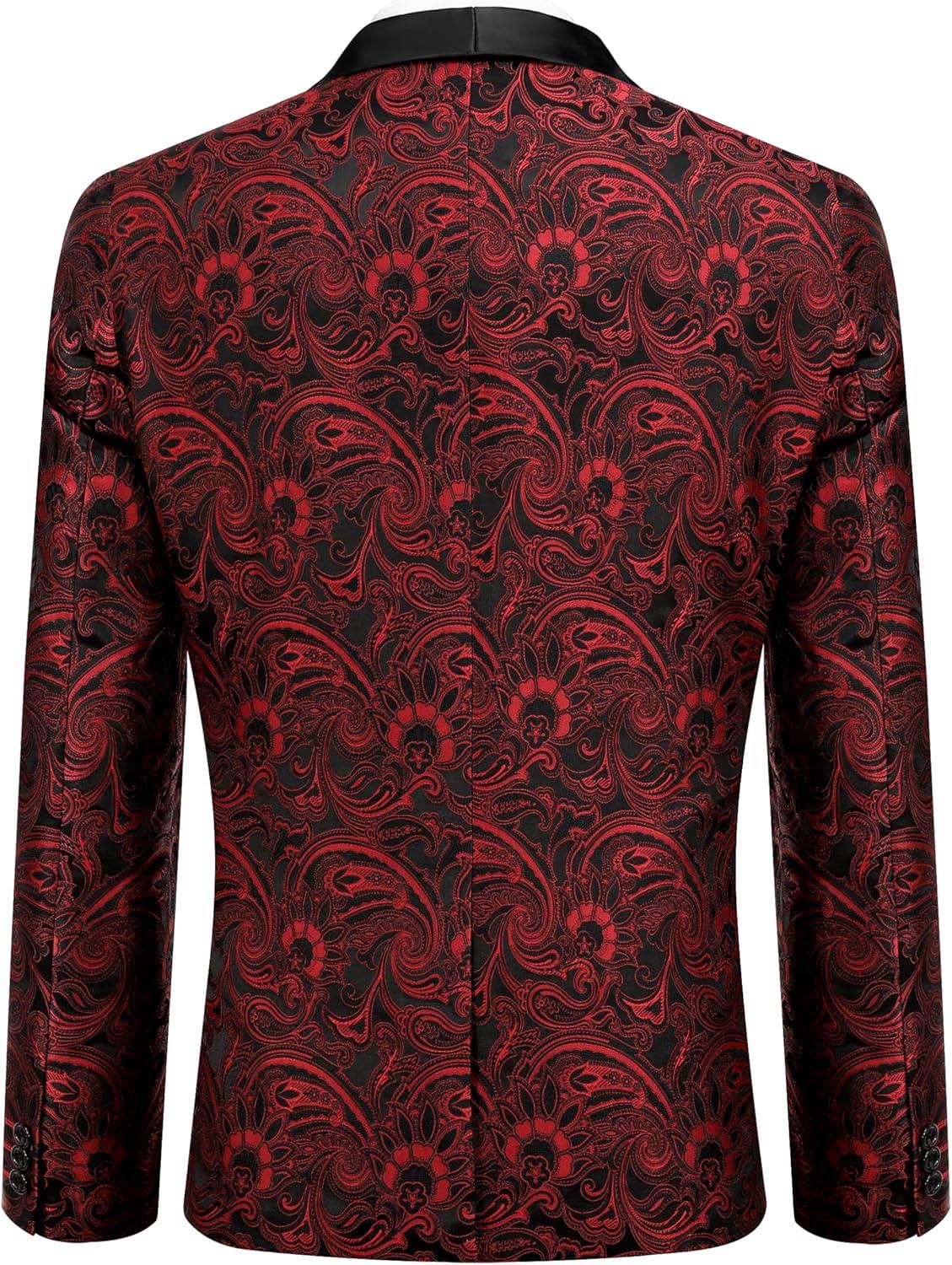 COOFANDY Men’s Floral Tuxedo Jacket Luxury Embroidered Wedding Blazer Dress Suit for Party Dinner(Red)