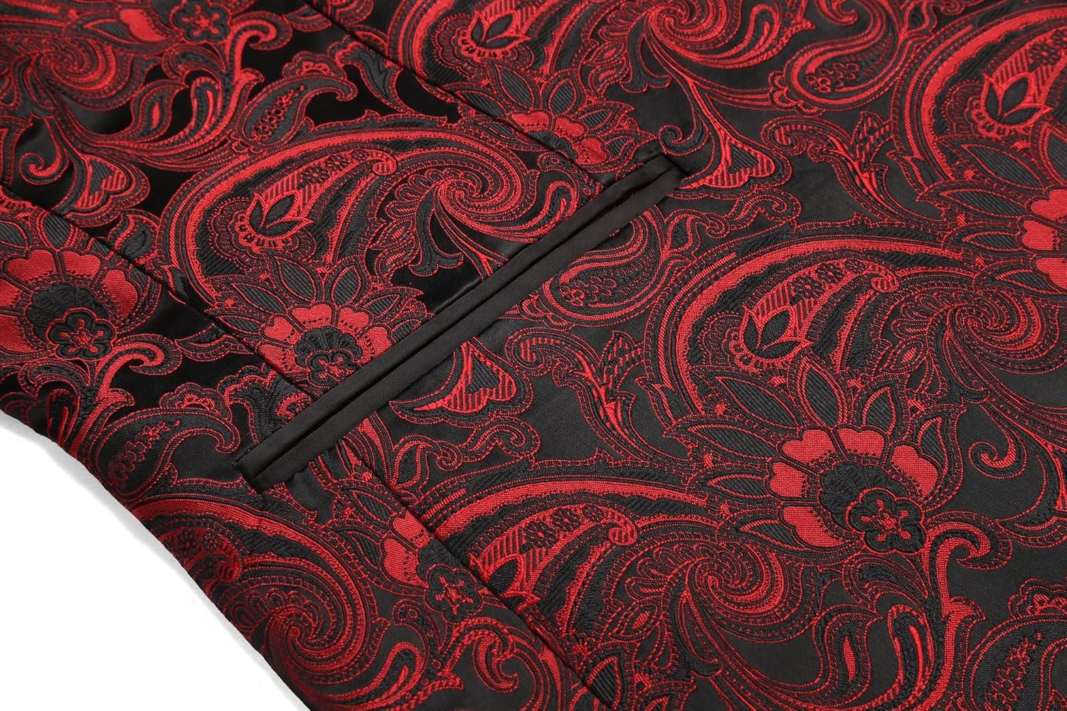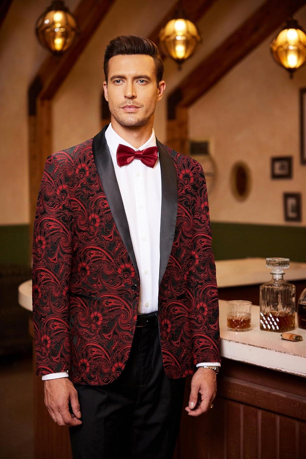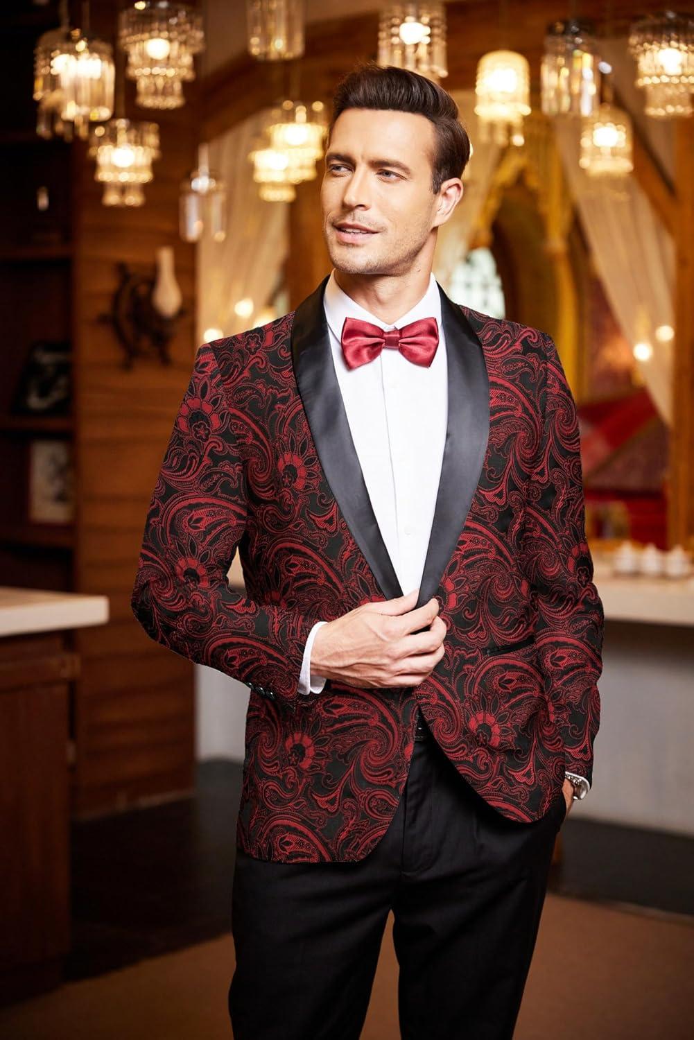COOFANDY Men’s Floral Tuxedo Jacket Luxury Embroidered Wedding Blazer Dress Suit for Party Dinner(Red)