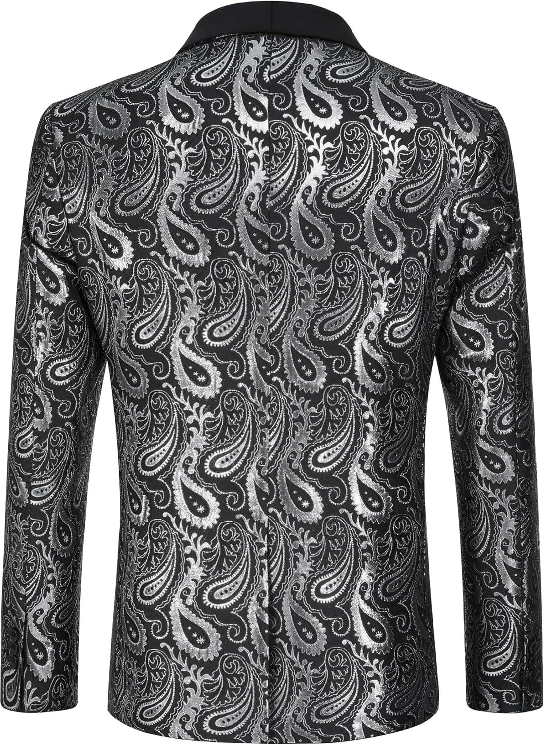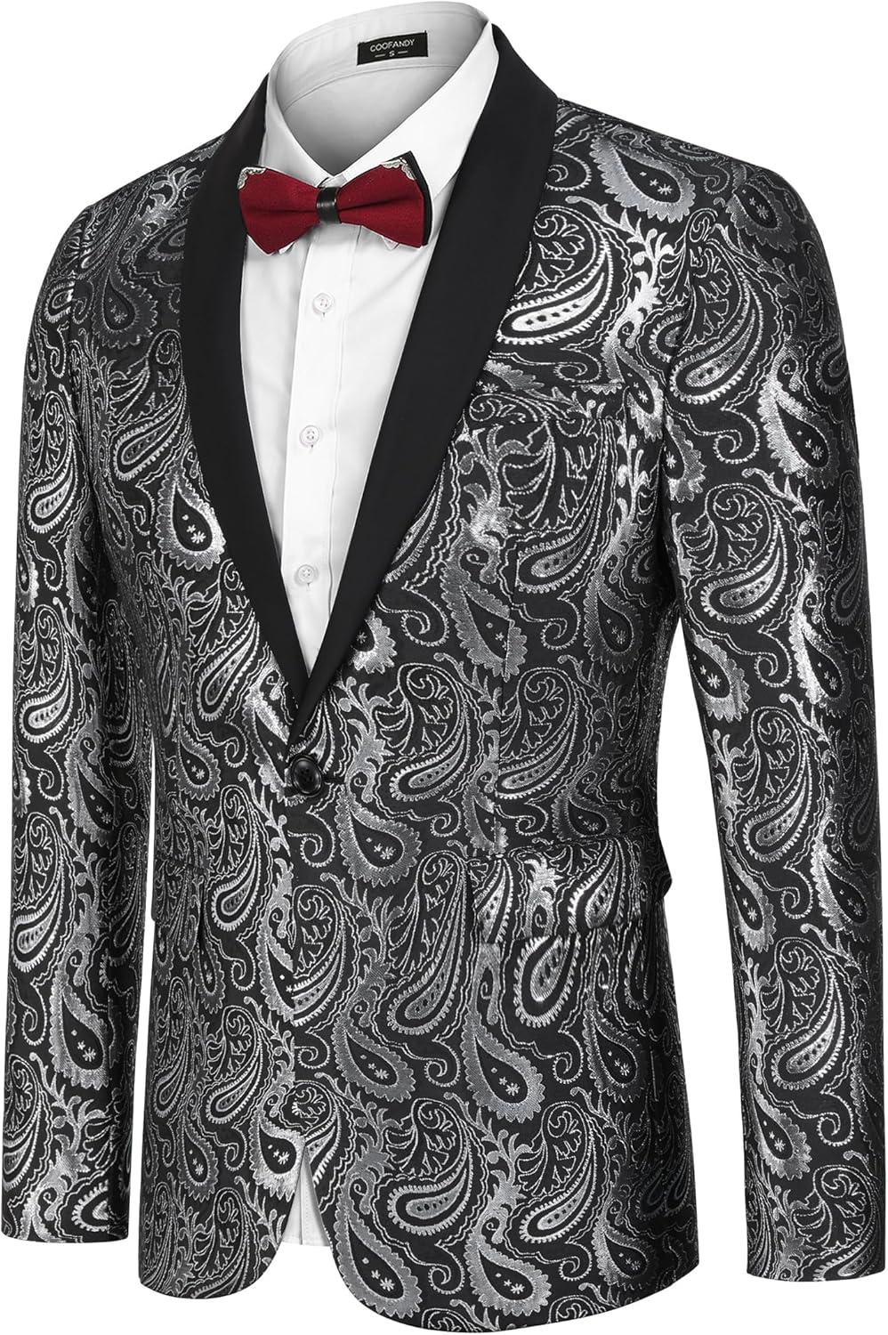 COOFANDY Mens Floral Tuxedo Jacket Paisley Shawl Lapel Suit Blazer Jacket for Dinner,Prom,Wedding(Blacksilver)