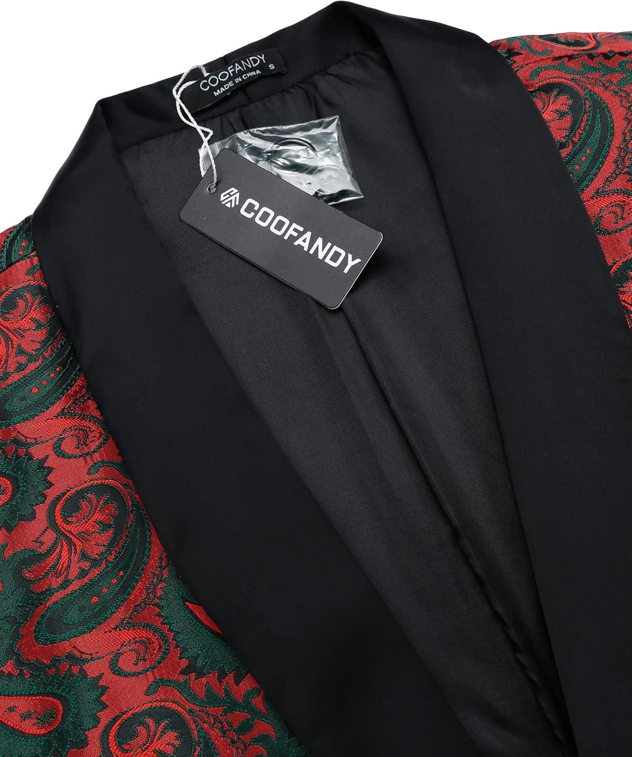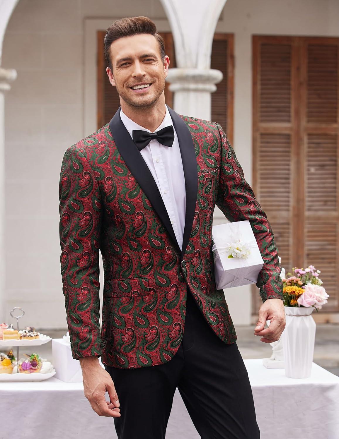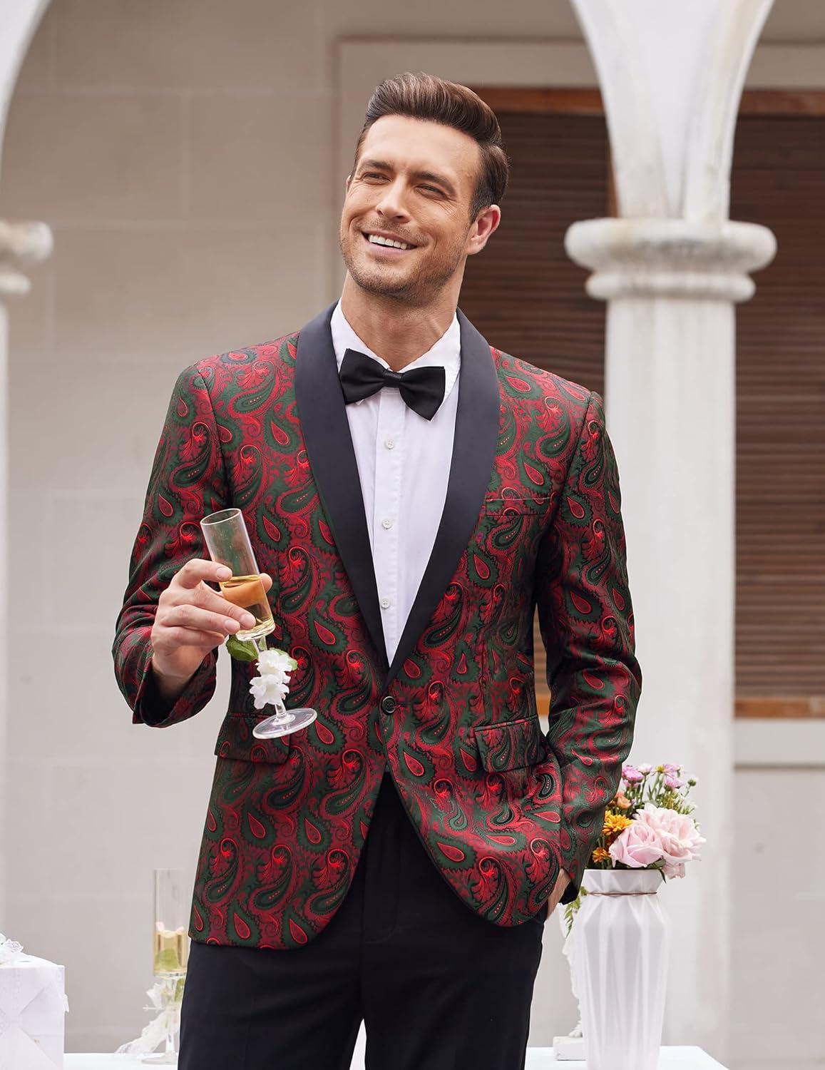 COOFANDY Mens Floral Tuxedo Jacket Paisley Shawl Lapel Suit Blazer Jacket for Dinner,Prom,Wedding(Christmas Red Green)