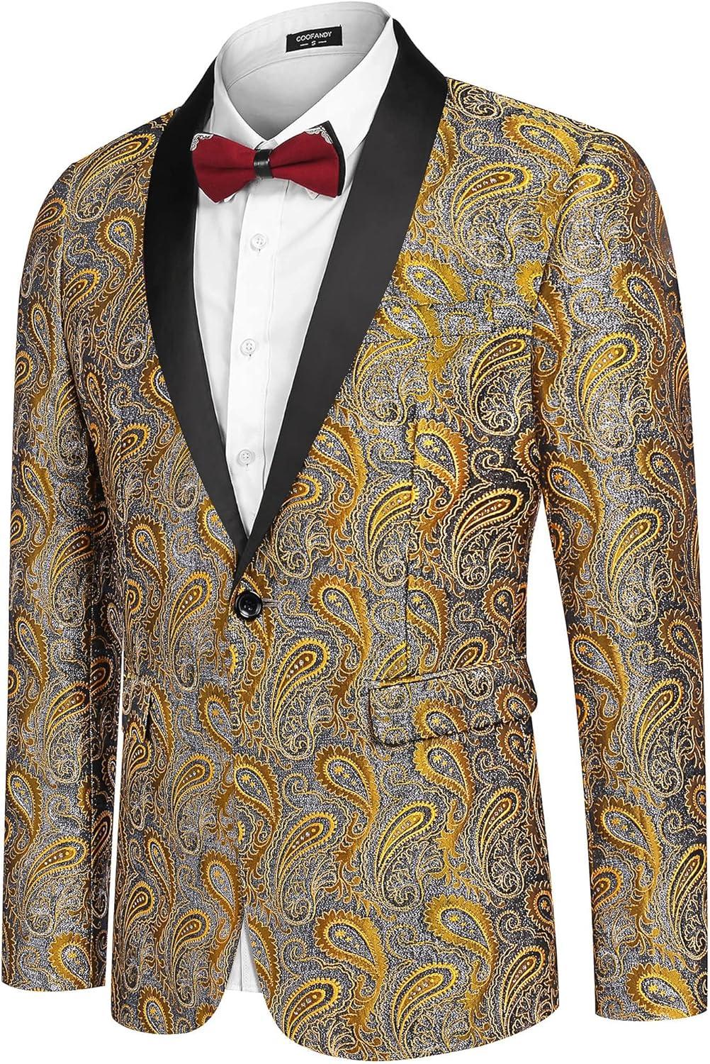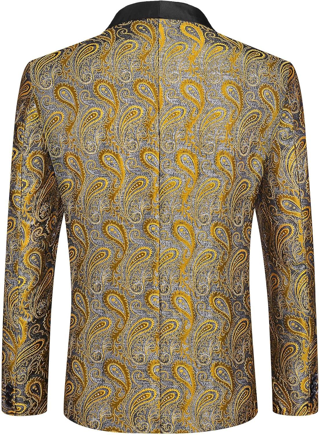 COOFANDY Mens Floral Tuxedo Jacket Paisley Shawl Lapel Suit Blazer Jacket for Dinner,Prom,Wedding(Golden)