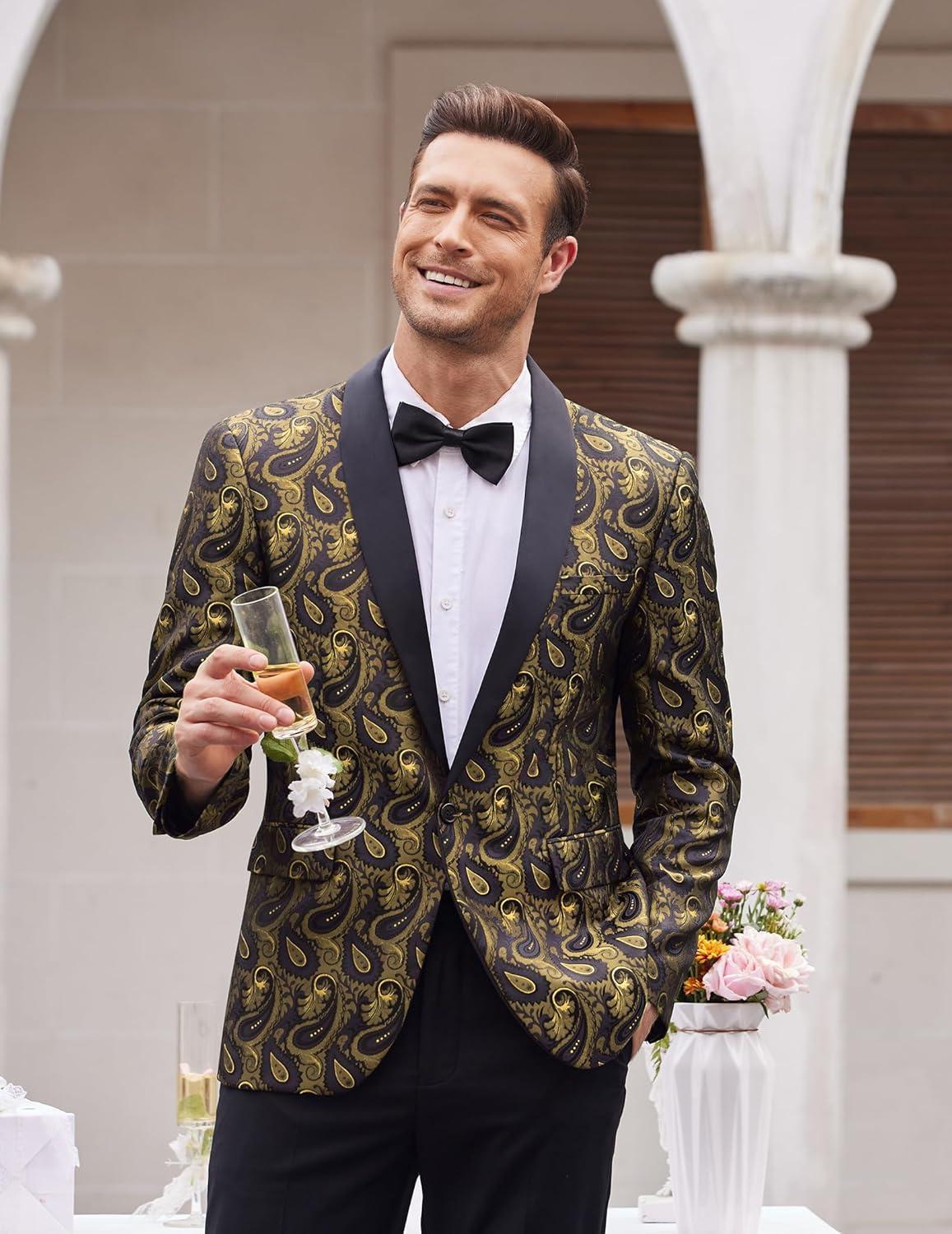 Get your hands on our newest COOFANDY Mens Floral Tuxedo Jacket Paisley Shawl Lapel Suit Blazer Jacket for Dinner,Prom,Wedding(Golden) and enjoy a limited-time discount offer.