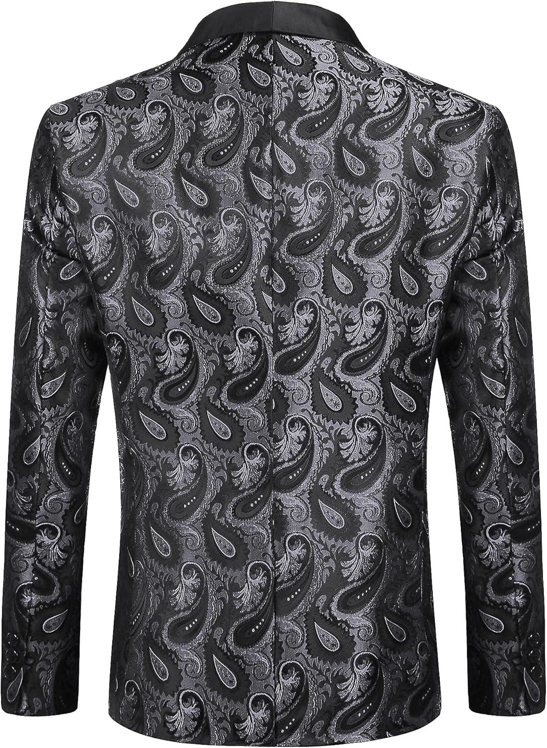 COOFANDY Mens Floral Tuxedo Jacket Paisley Shawl Lapel Suit Blazer Jacket for Dinner,Prom,Wedding(Grey)