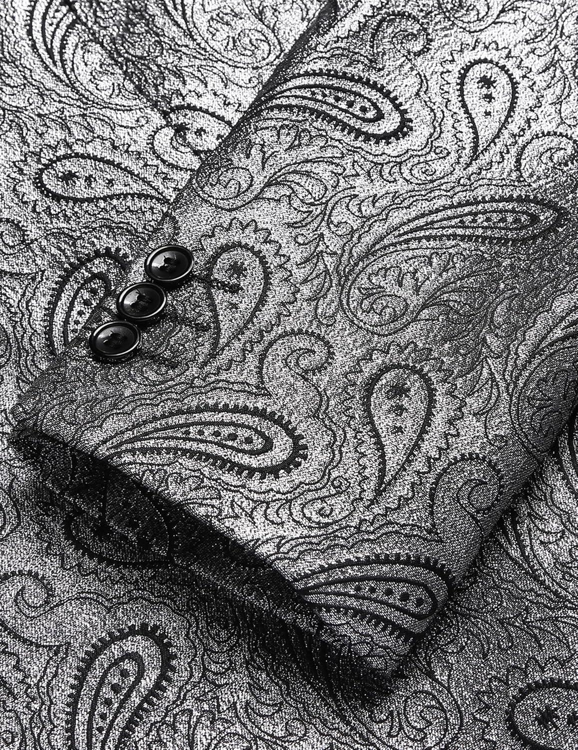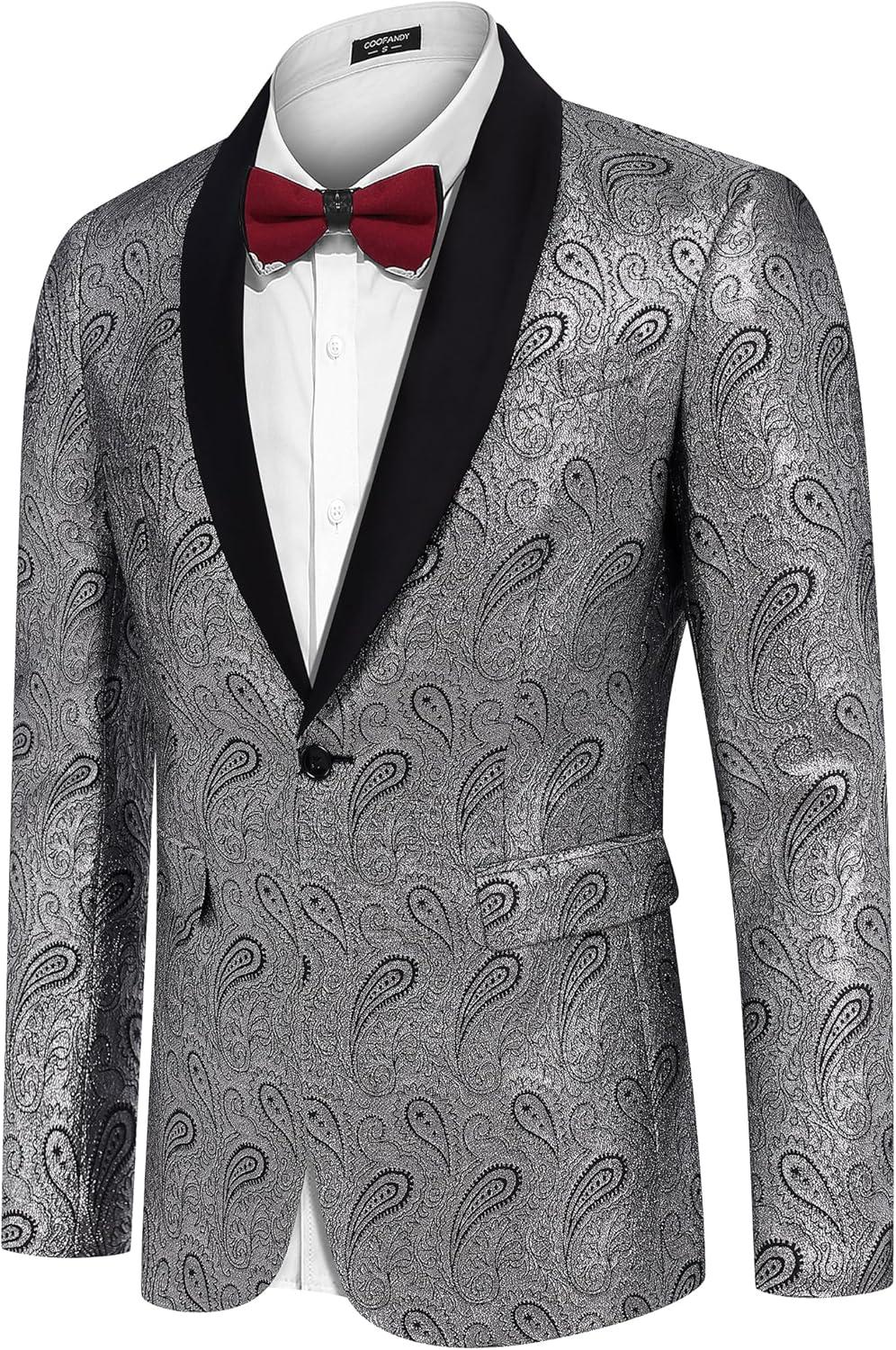 COOFANDY Mens Floral Tuxedo Jacket Paisley Shawl Lapel Suit Blazer Jacket for Dinner,Prom,Wedding(Silver)