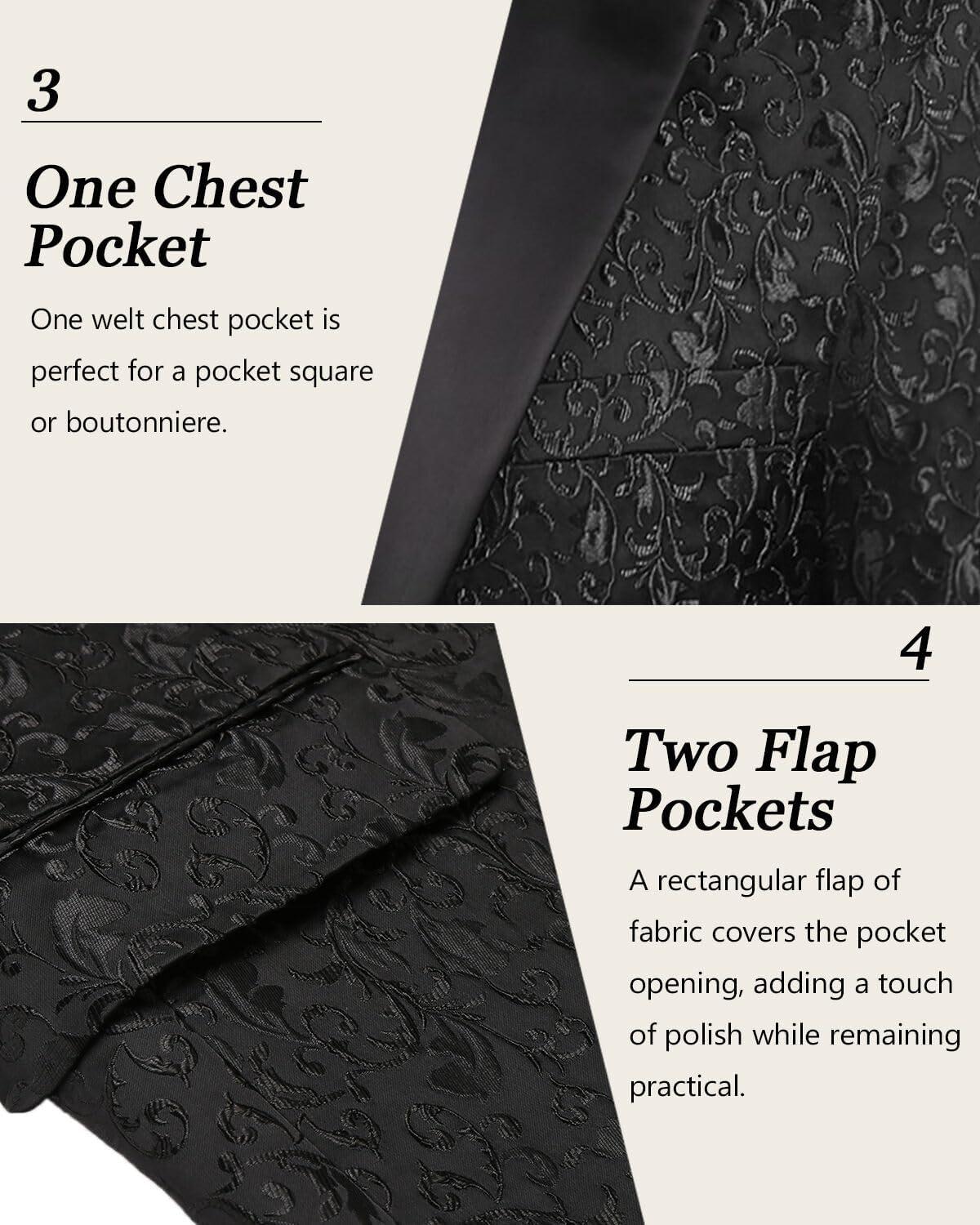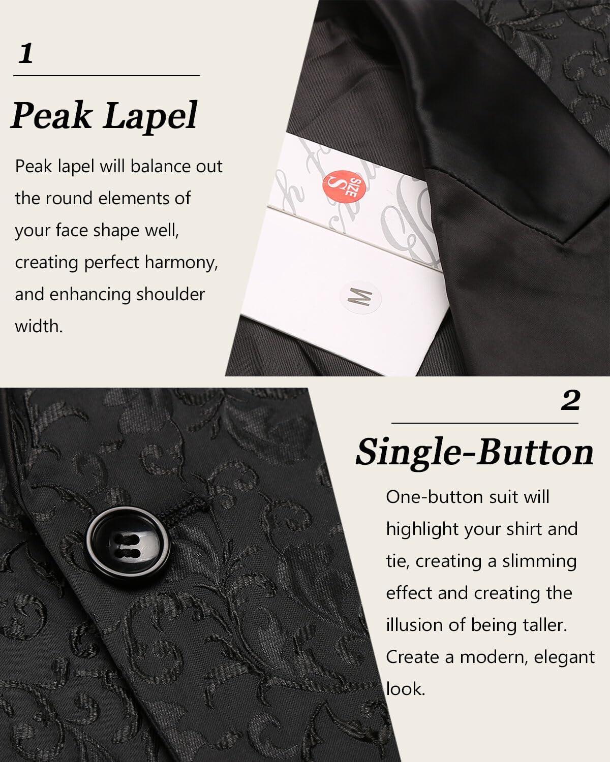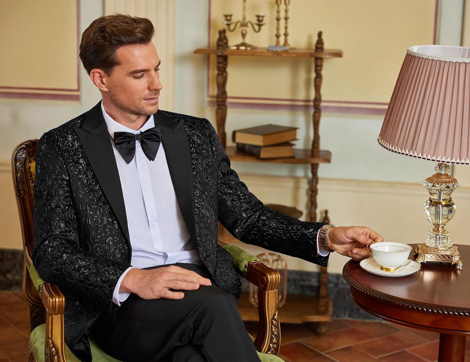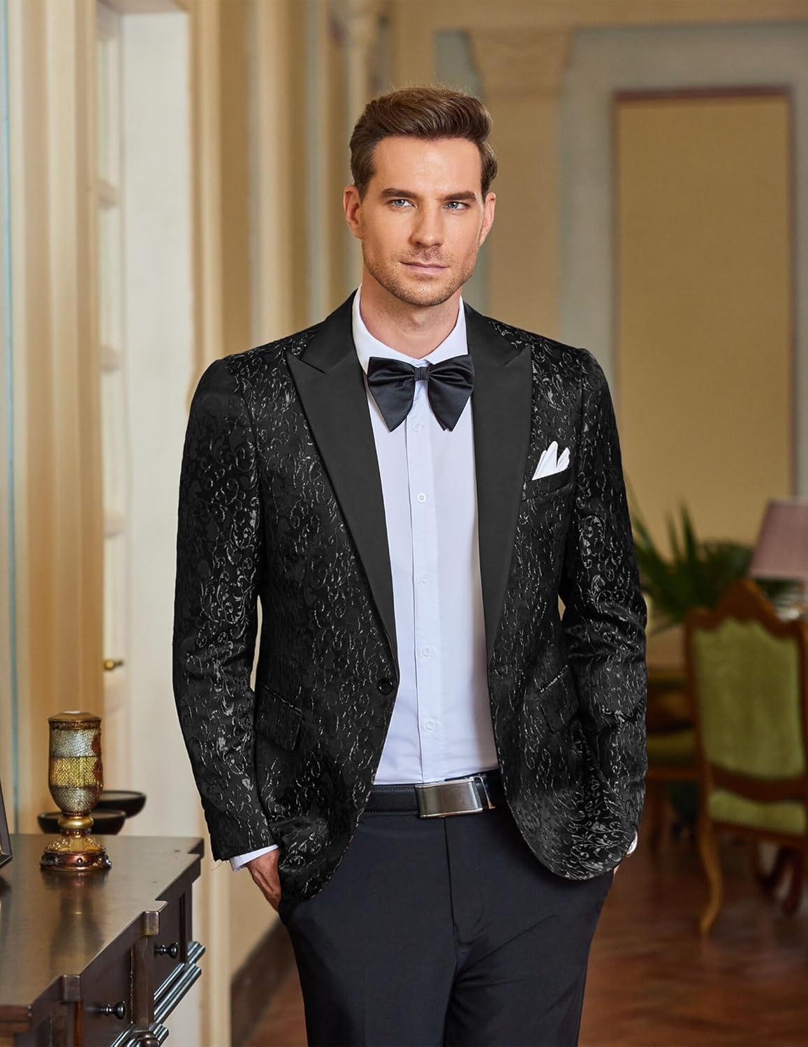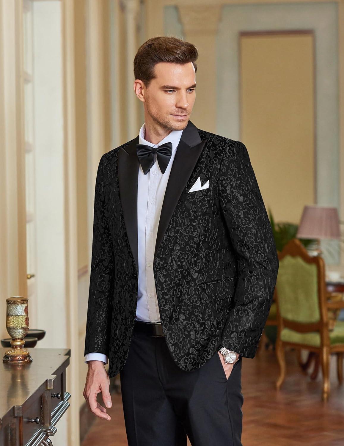 COOFANDY Mens Floral Tuxedo One Button Luxury Shiny Blazer Dinner Party Prom Wedding Suit Jacket(1 - Black)