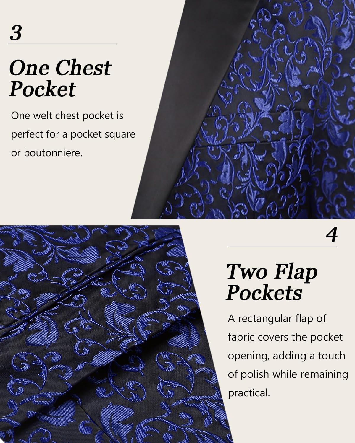 imageCOOFANDY Mens Floral Tuxedo One Button Luxury Shiny Blazer Dinner Party Prom Wedding Suit Jacket1  Blue