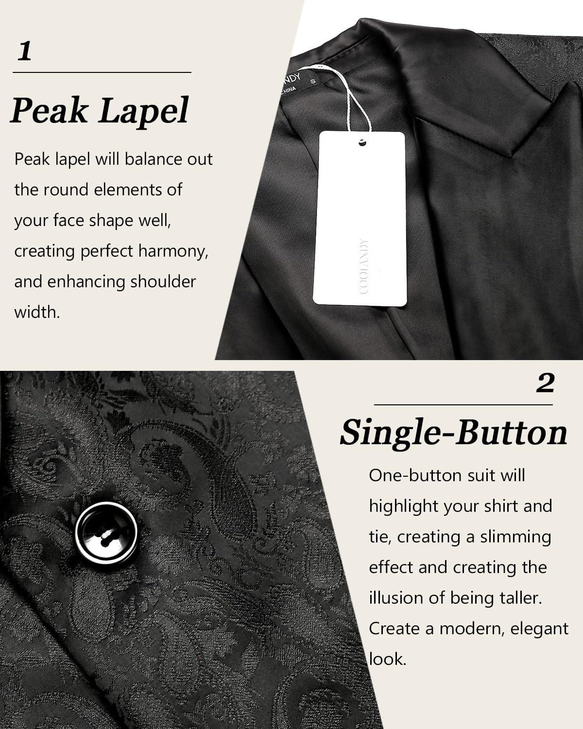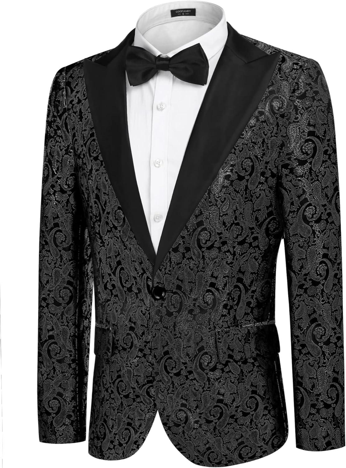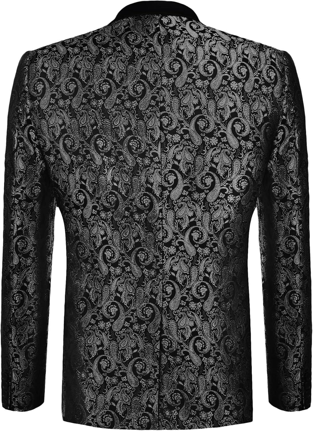 COOFANDY Mens Floral Tuxedo One Button Luxury Shiny Blazer Dinner Party Prom Wedding Suit Jacket(Black Paisley)