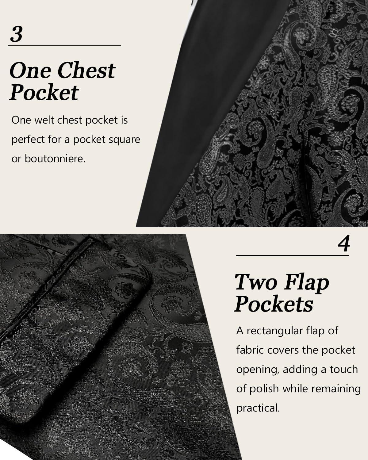 imageCOOFANDY Mens Floral Tuxedo One Button Luxury Shiny Blazer Dinner Party Prom Wedding Suit JacketBlack Paisley