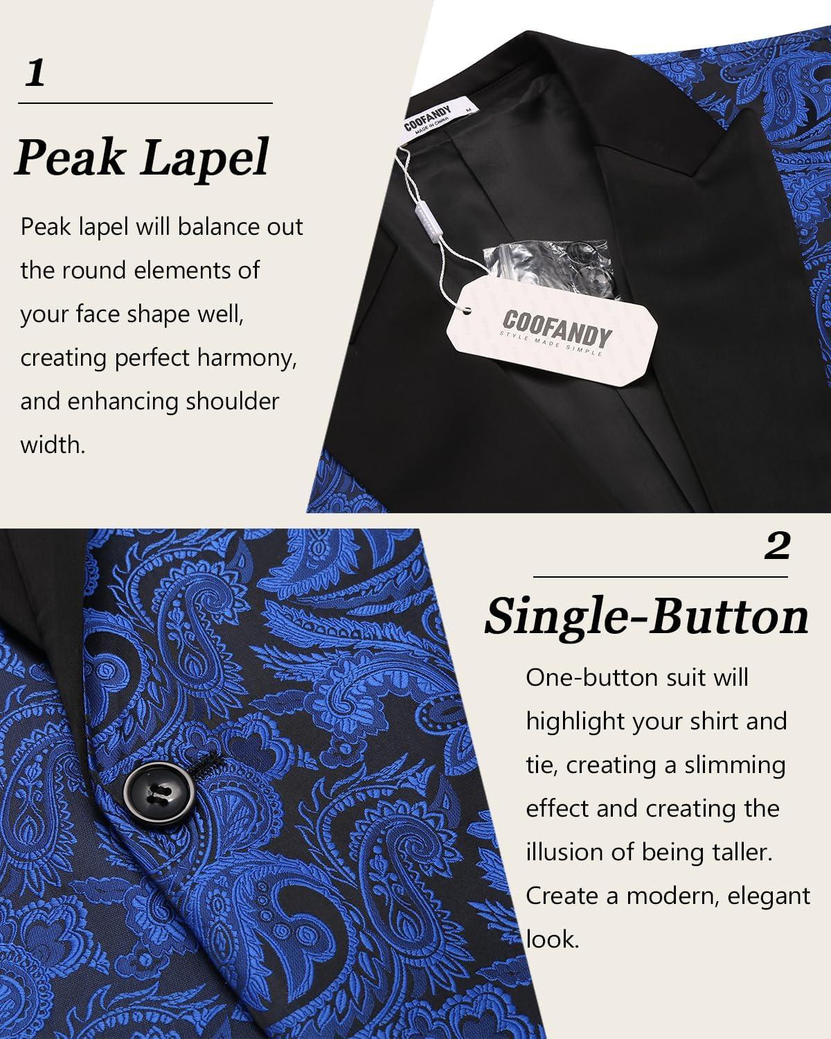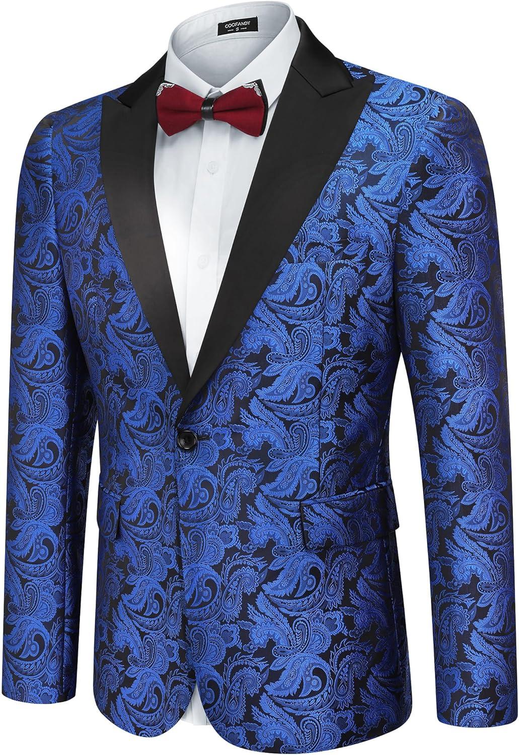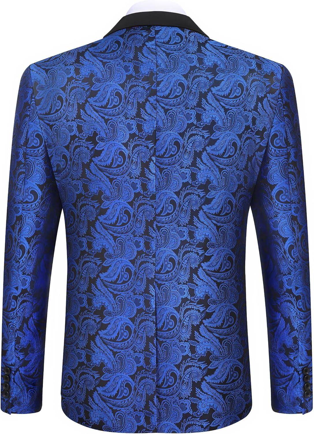 COOFANDY Mens Floral Tuxedo One Button Luxury Shiny Blazer Dinner Party Prom Wedding Suit Jacket(Blue Paisley)