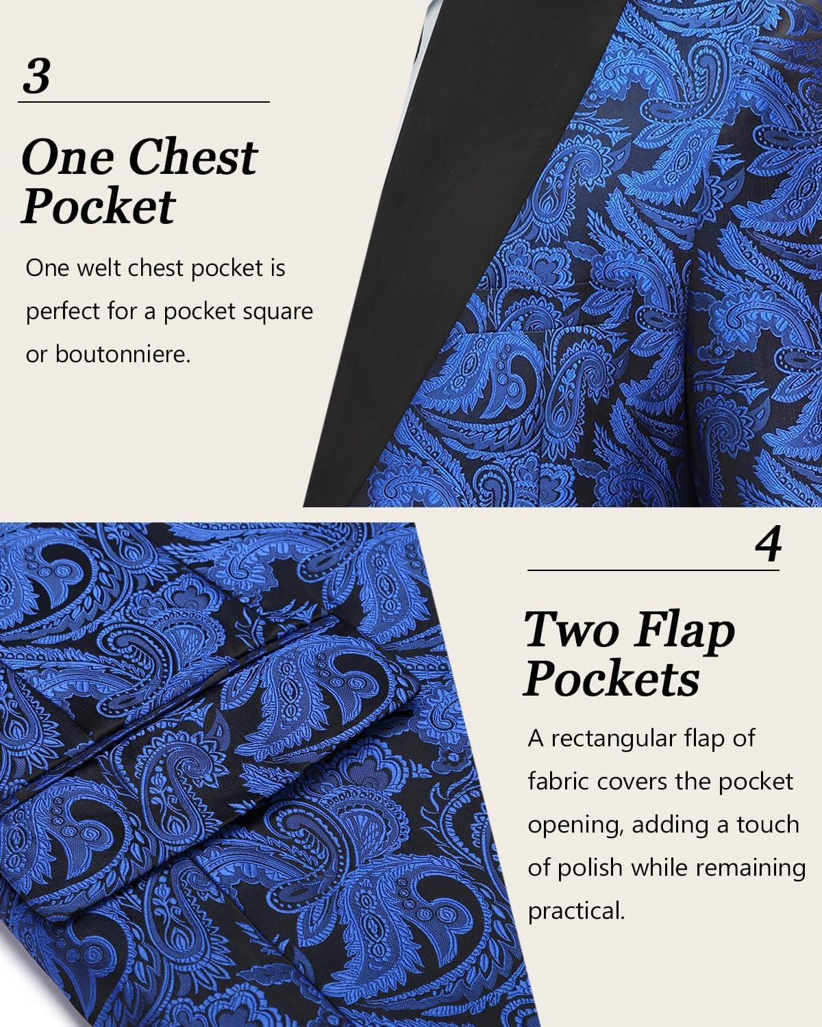 imageCOOFANDY Mens Floral Tuxedo One Button Luxury Shiny Blazer Dinner Party Prom Wedding Suit JacketBlue Paisley