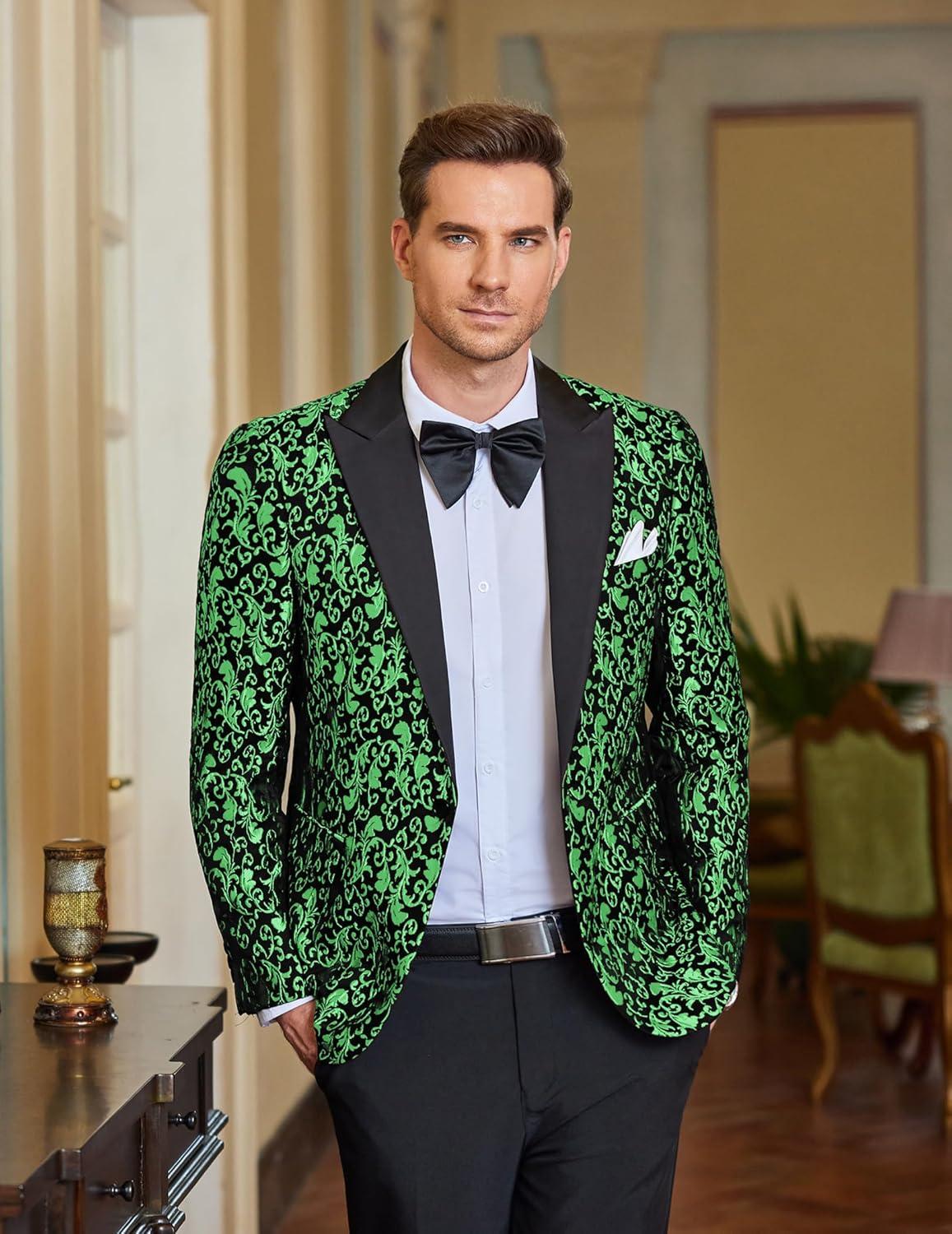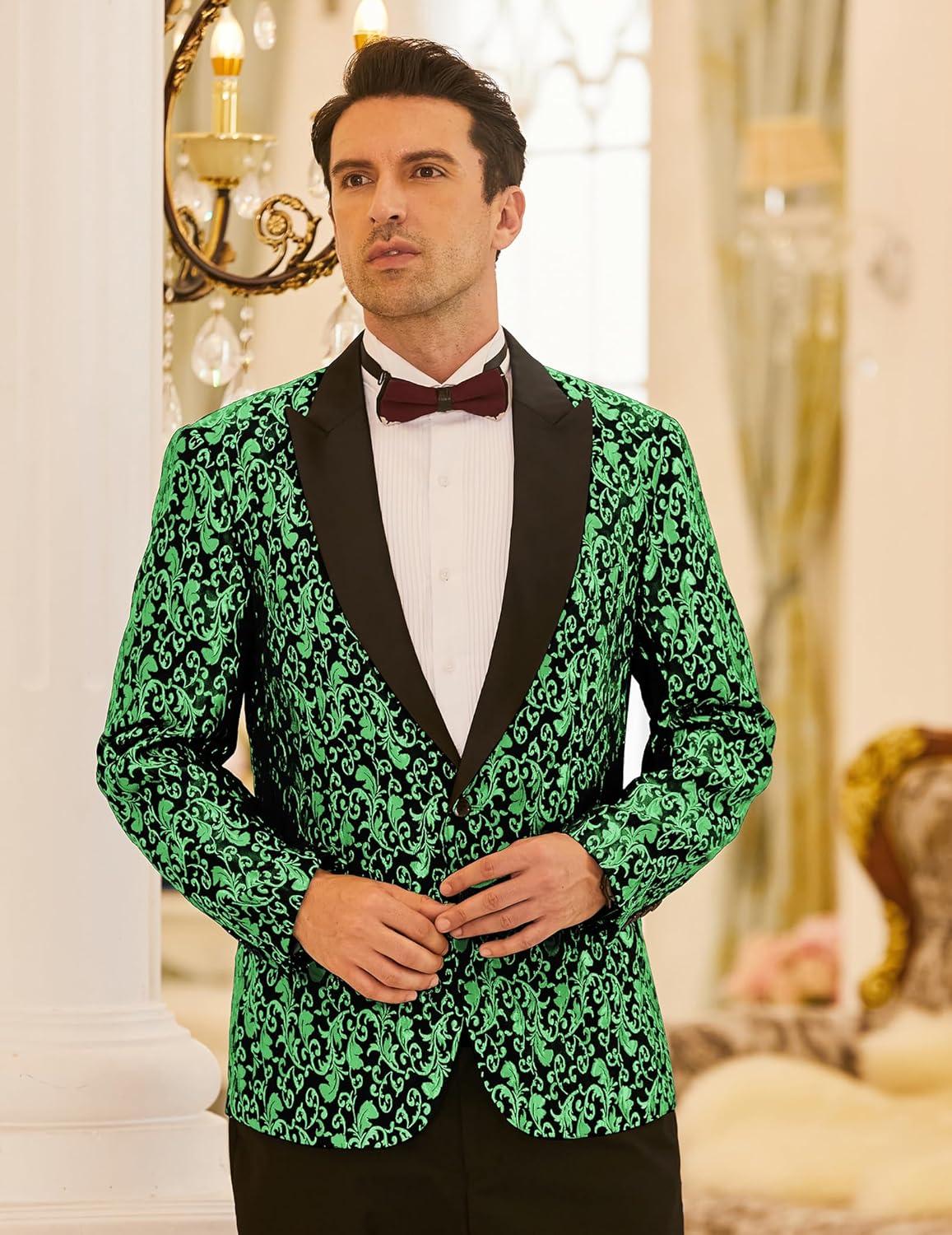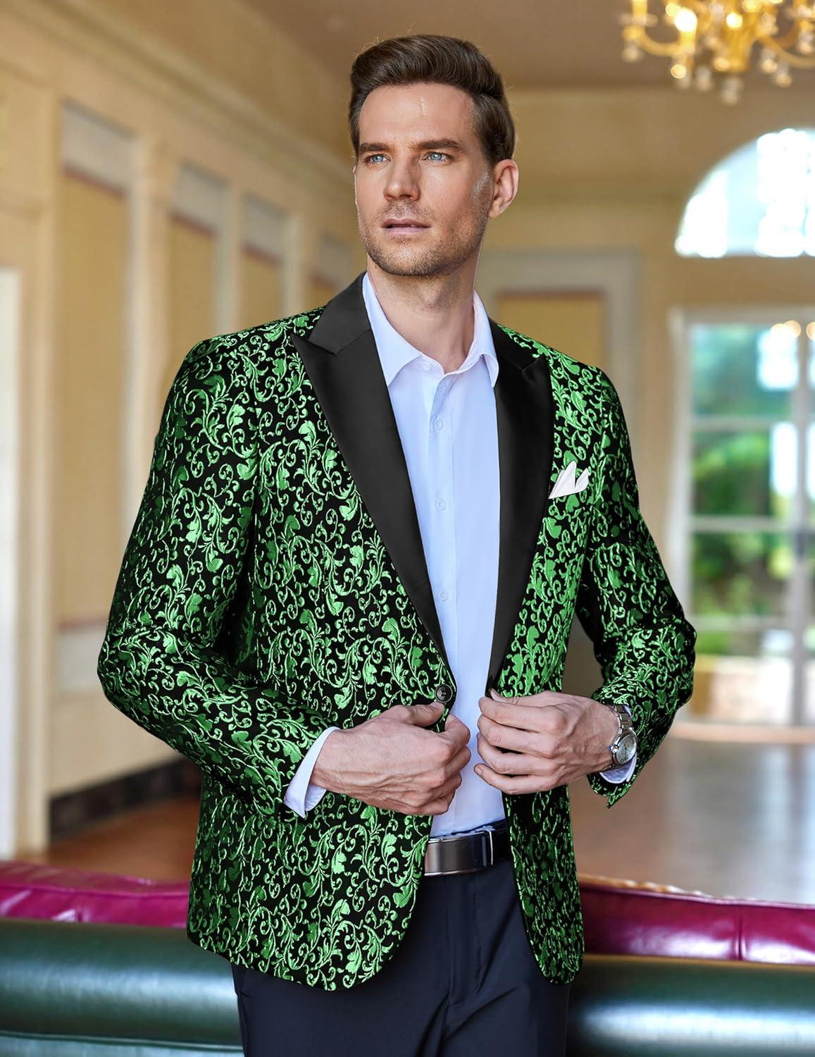 COOFANDY Mens Floral Tuxedo One Button Luxury Shiny Blazer Dinner Party Prom Wedding Suit Jacket(Green Floral)