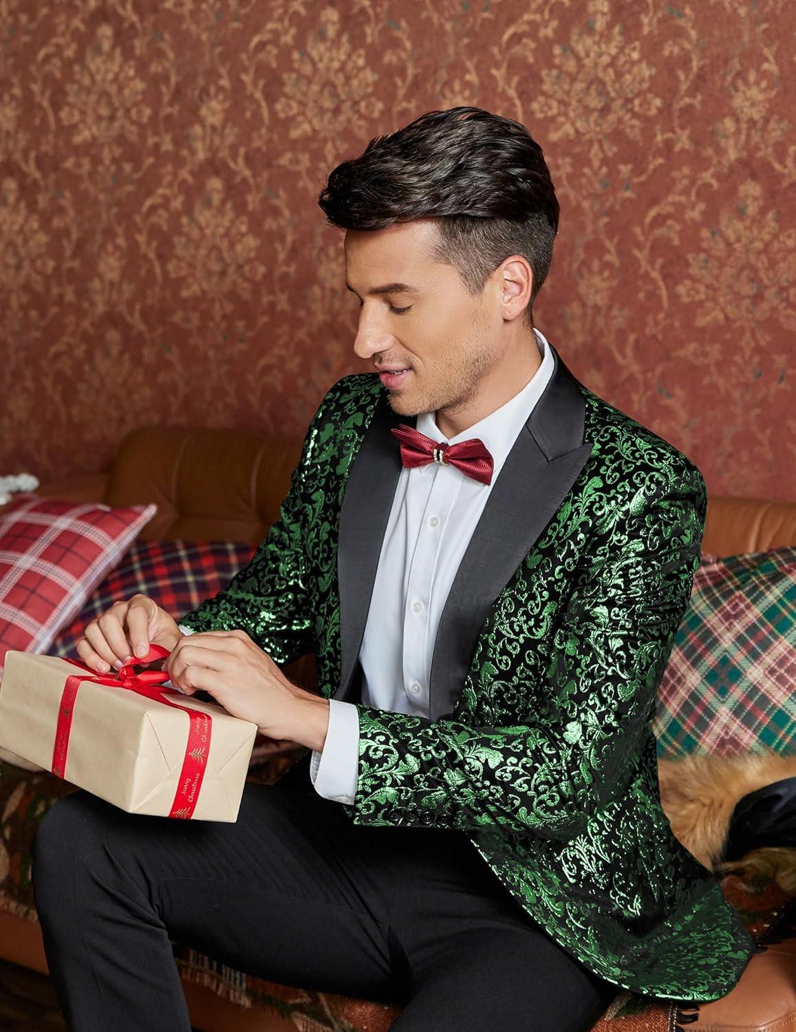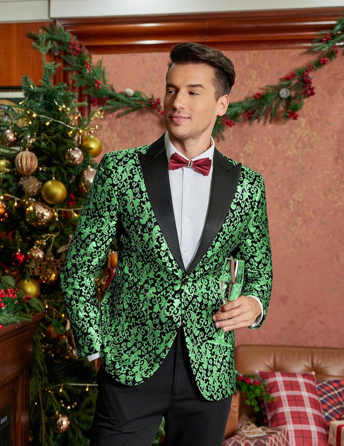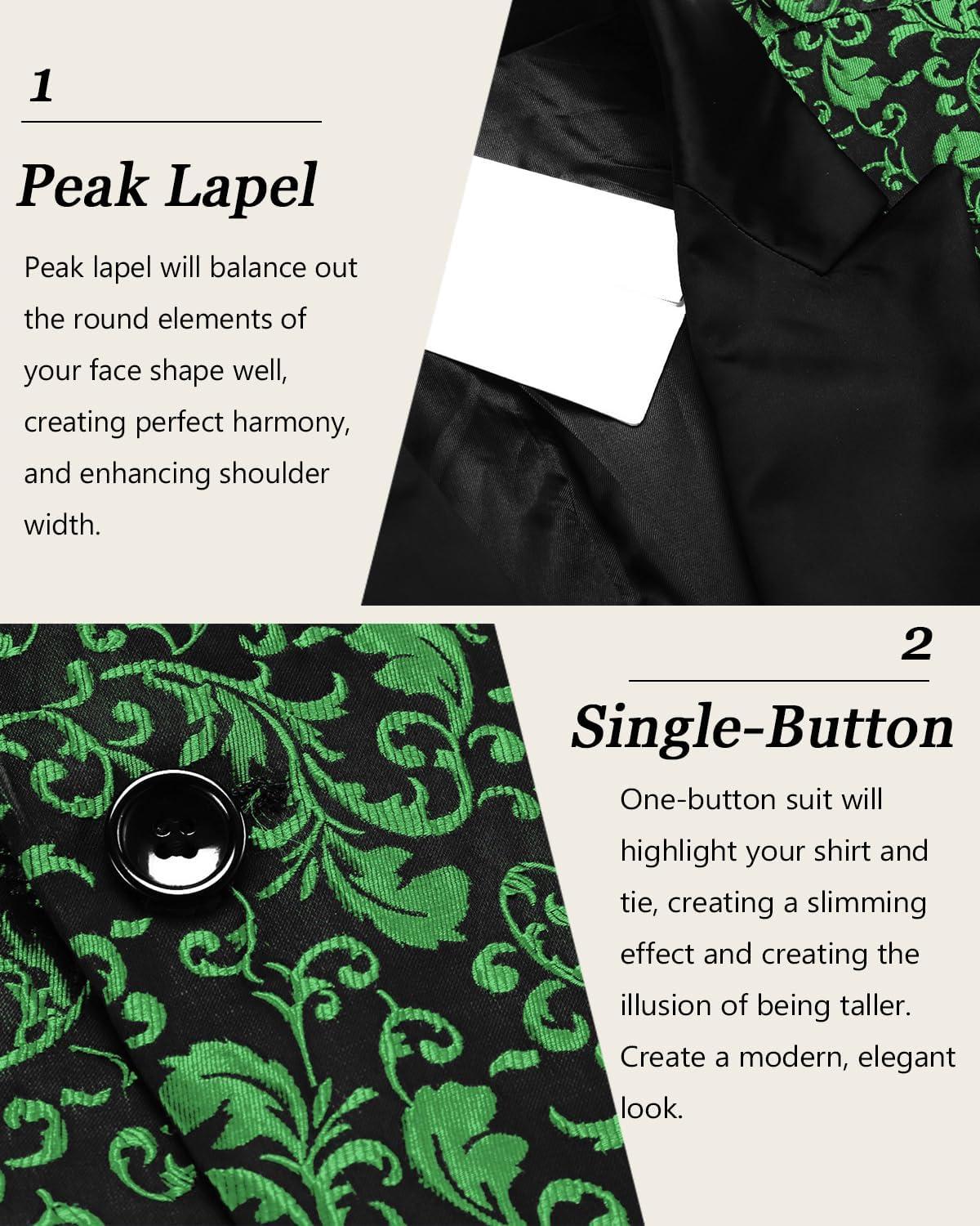 COOFANDY Mens Floral Tuxedo One Button Luxury Shiny Blazer Dinner Party Prom Wedding Suit Jacket(Green Floral)