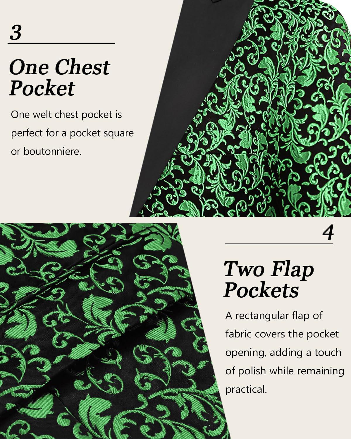 imageCOOFANDY Mens Floral Tuxedo One Button Luxury Shiny Blazer Dinner Party Prom Wedding Suit JacketGreen Floral