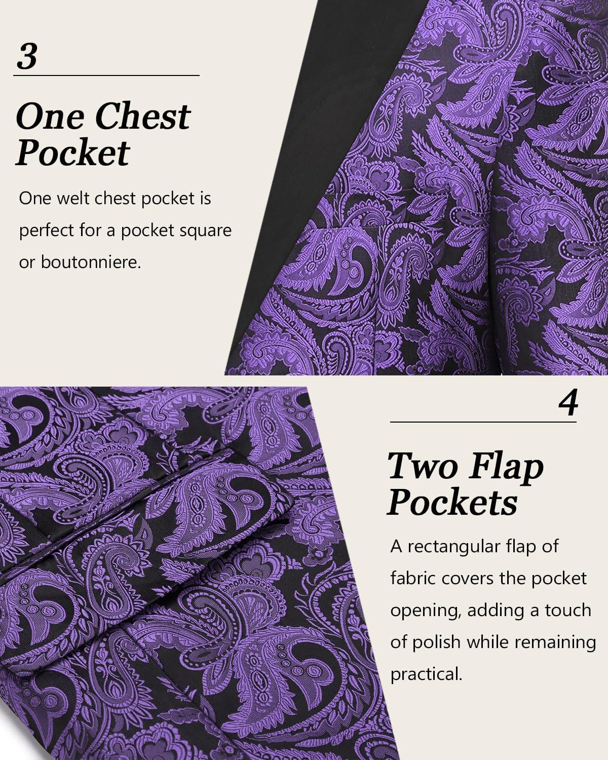 imageCOOFANDY Mens Floral Tuxedo One Button Luxury Shiny Blazer Dinner Party Prom Wedding Suit JacketPurple Paisley