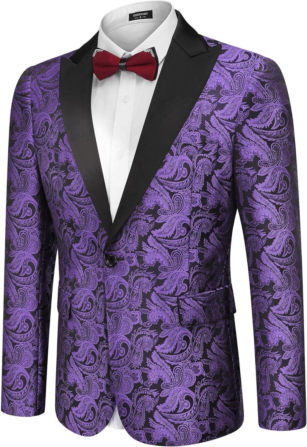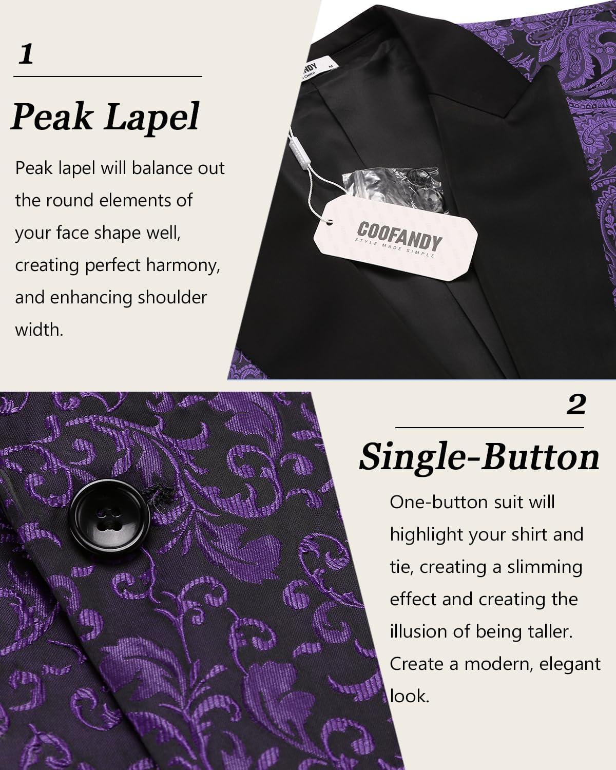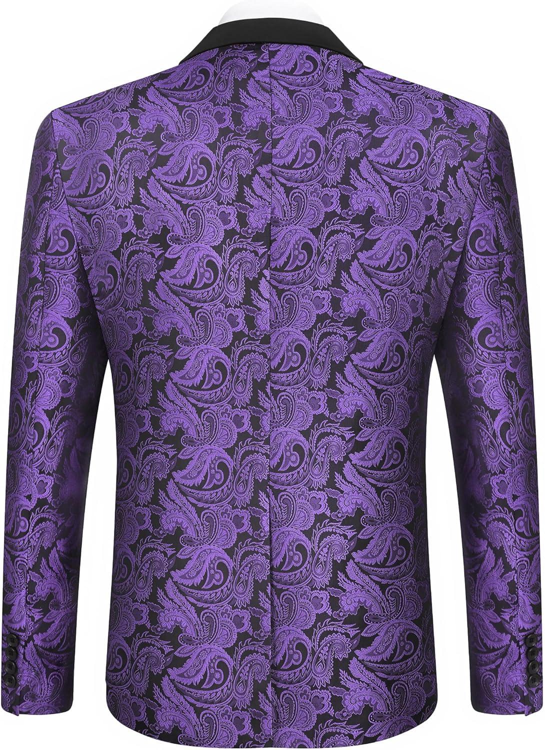 COOFANDY Mens Floral Tuxedo One Button Luxury Shiny Blazer Dinner Party Prom Wedding Suit Jacket(Purple Paisley)