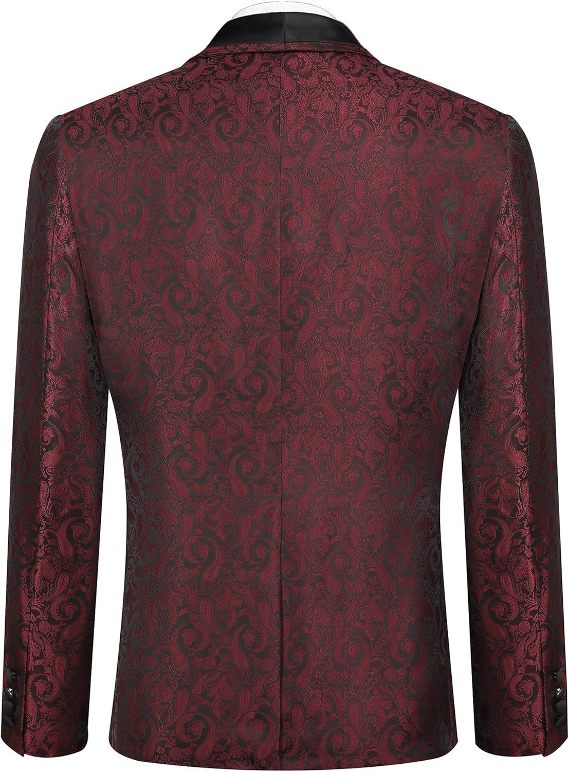 COOFANDY Men’s Floral Tuxedo Suit Jacket Slim Fit Dinner Jacket Party Prom Wedding Blazer Jackets(Wine Red)