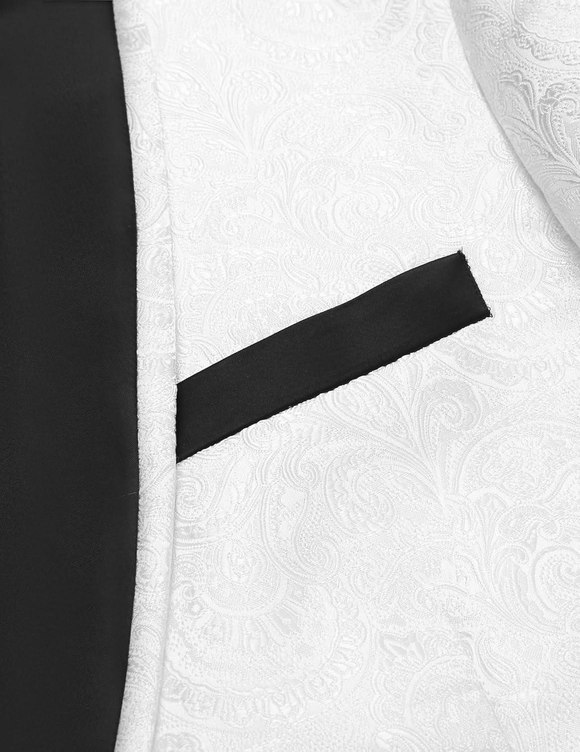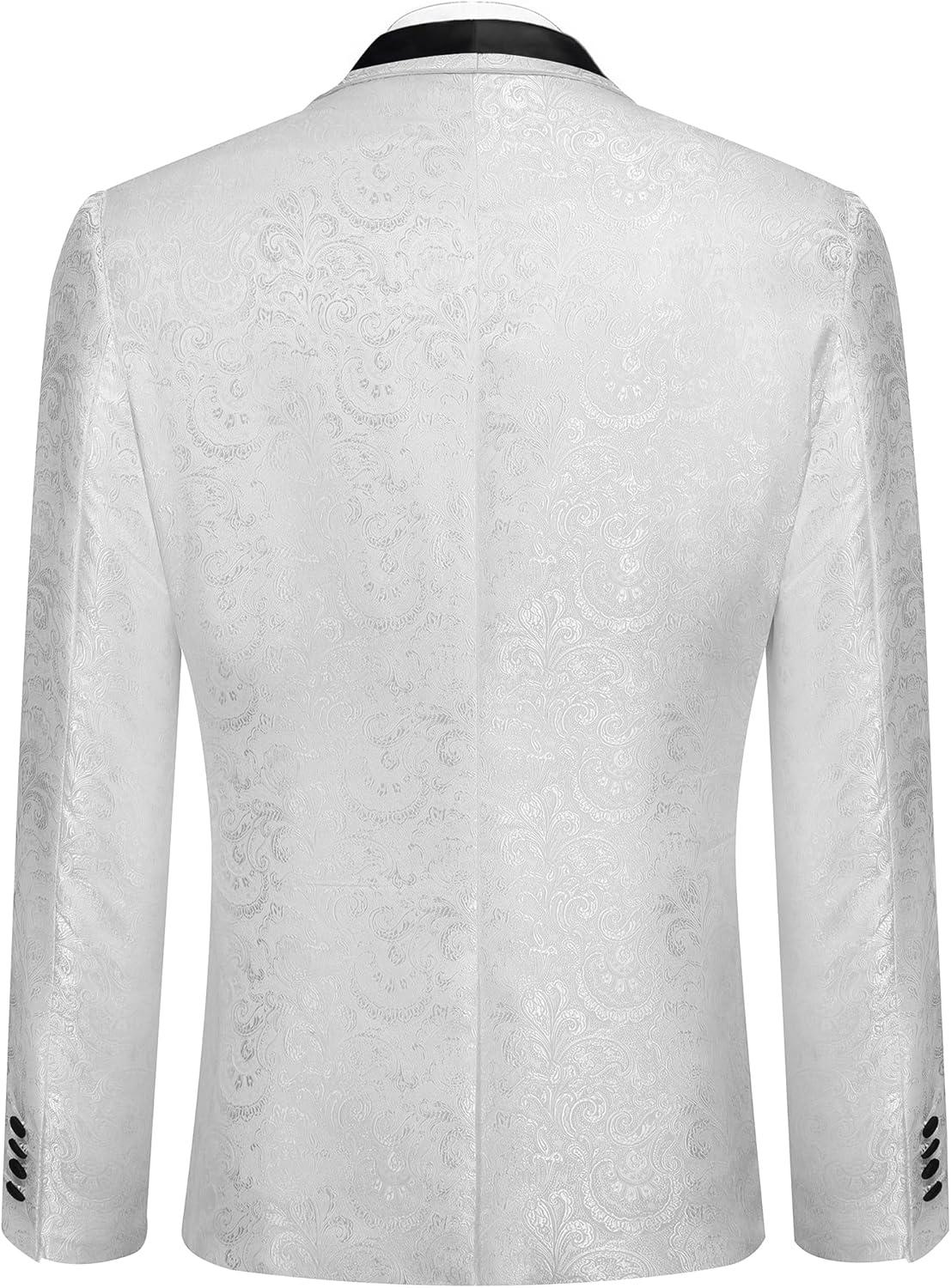COOFANDY Men’s Floral Tuxedo Suit Jacket Slim Fit Dinner Jacket Party Prom Wedding Blazer Jackets(White)