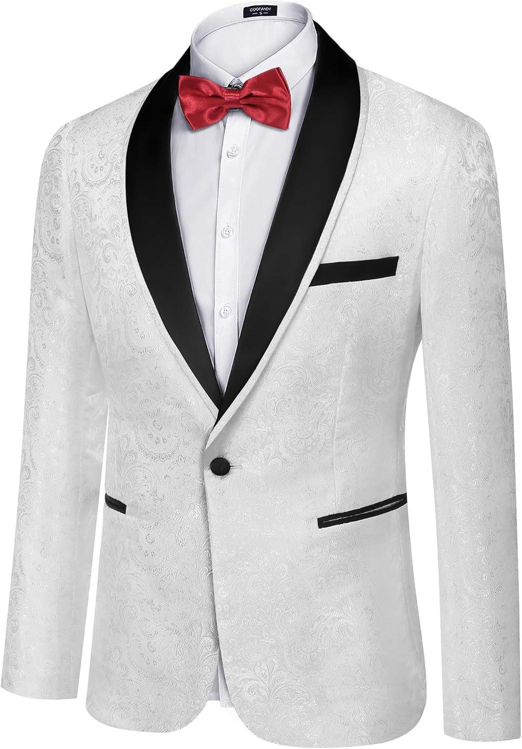 COOFANDY Men's Floral Tuxedo Suit Jacket Slim Fit Dinner Jacket Party Prom Wedding Blazer Jackets(White)