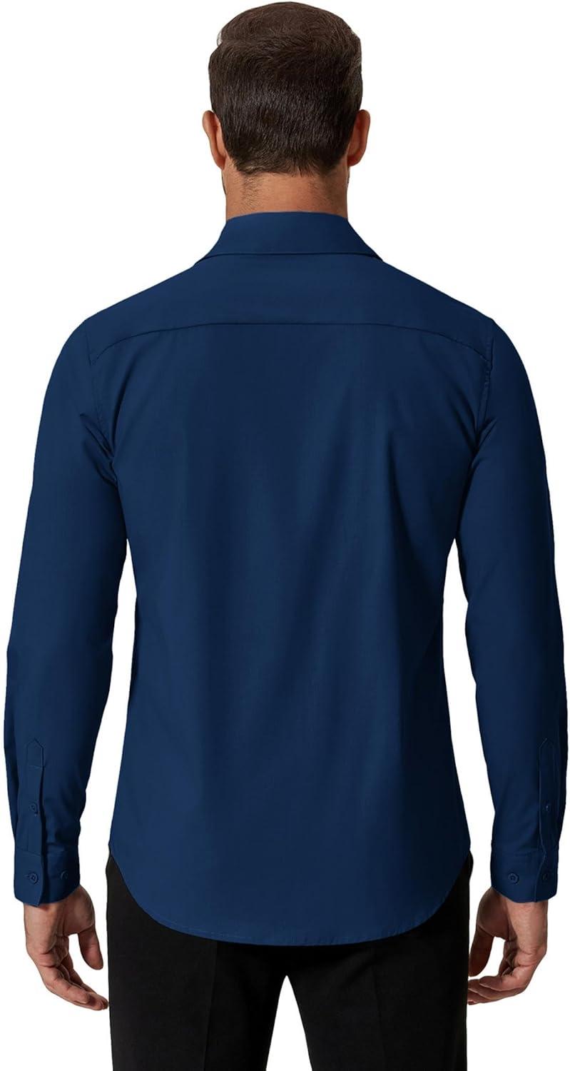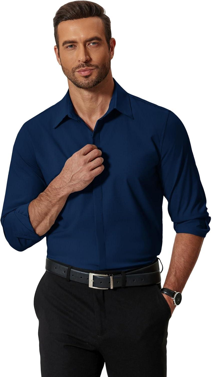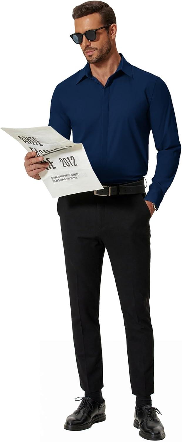 COOFANDY Men's Formal Dress Shirt Hidden Button Front Wrinkle Free Shirt Regular Fit Stretch Business Casual Shirts(Dark Blue)