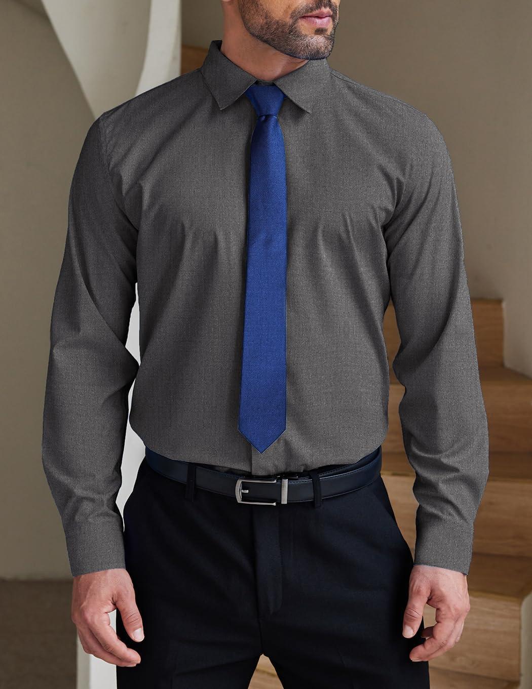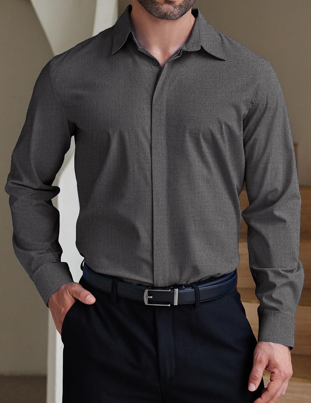 COOFANDY Men's Formal Dress Shirt Hidden Button Front Wrinkle Free Shirt Regular Fit Stretch Business Casual Shirts(Dark Grey)