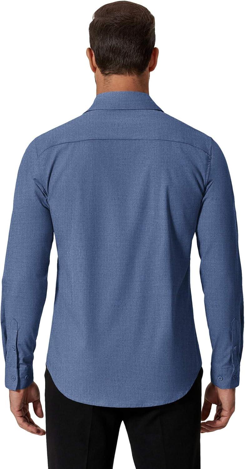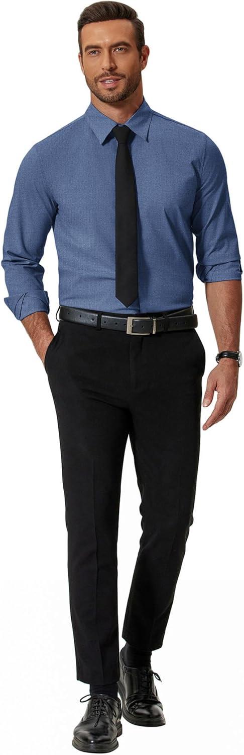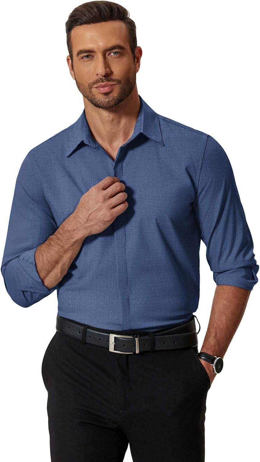 COOFANDY Men's Formal Dress Shirt Hidden Button Front Wrinkle Free Shirt Regular Fit Stretch Business Casual Shirts(Denim Blue)