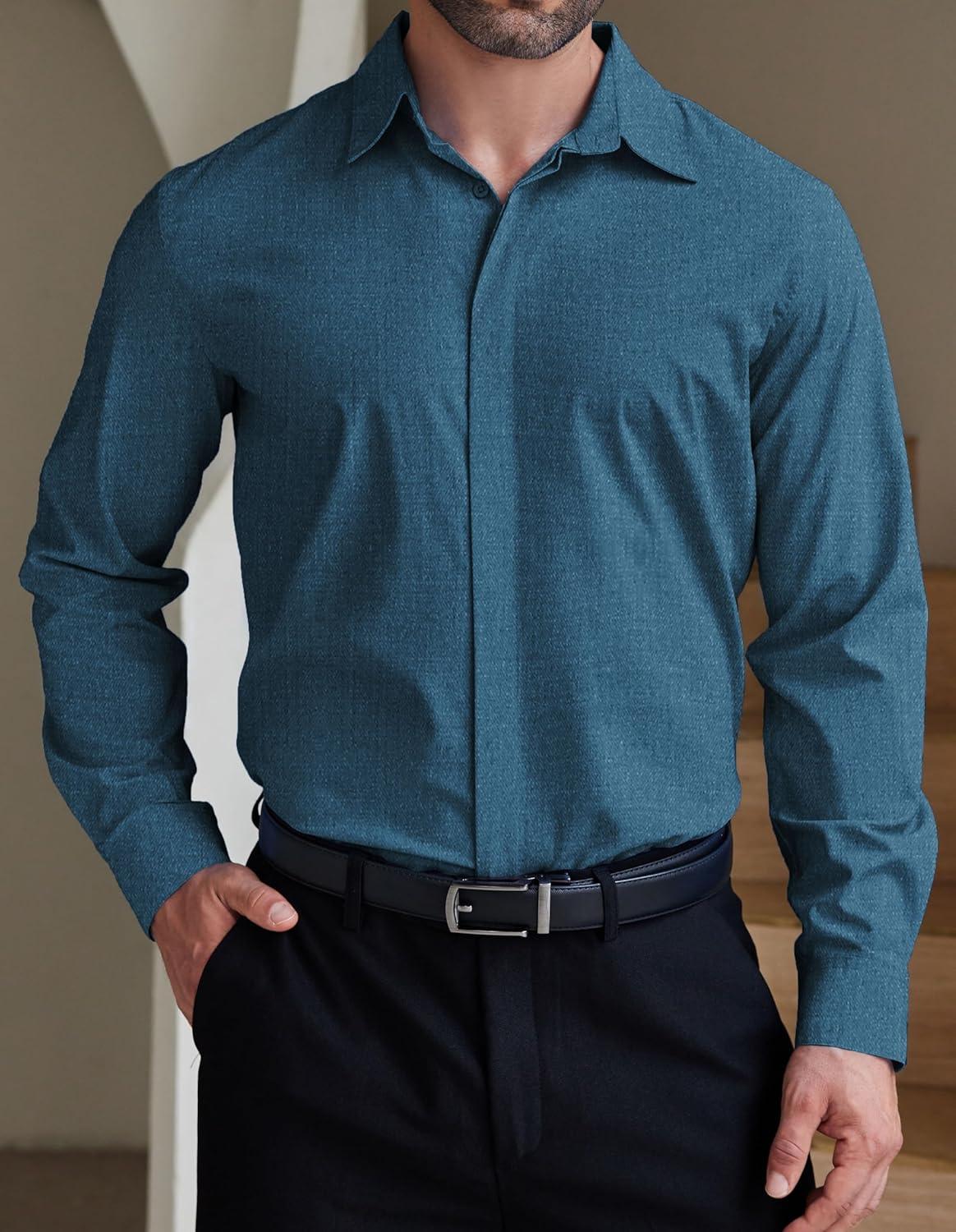 COOFANDY Men's Formal Dress Shirt Hidden Button Front Wrinkle Free Shirt Regular Fit Stretch Business Casual Shirts(Peacock Blue)