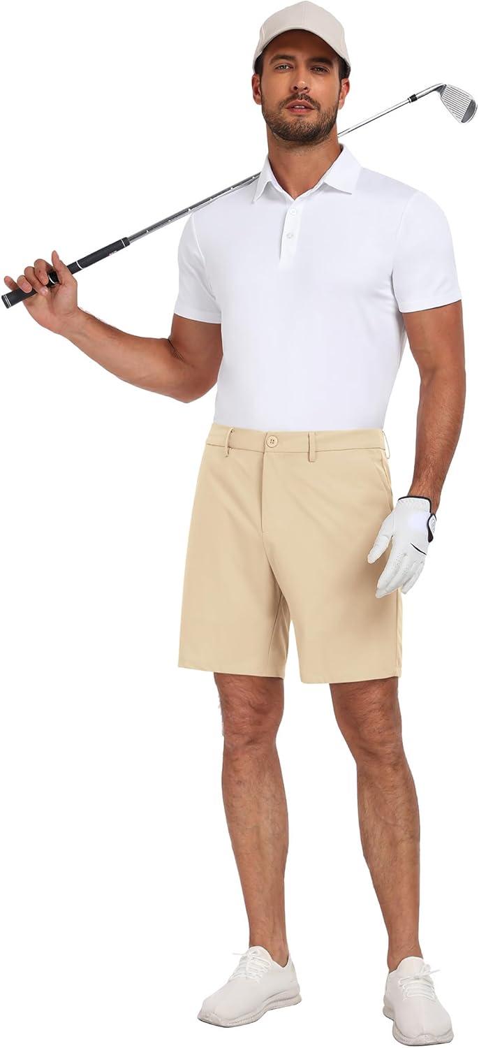 COOFANDY Mens Golf Dress Shorts Lightweight 7" Hiking Shorts Casual Summer Shorts with Pockets(Beige)