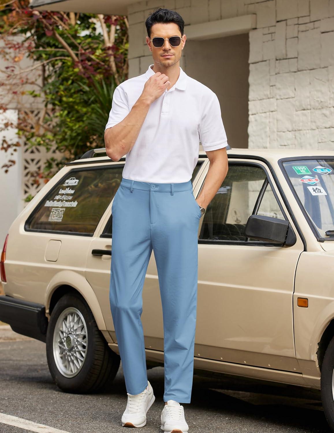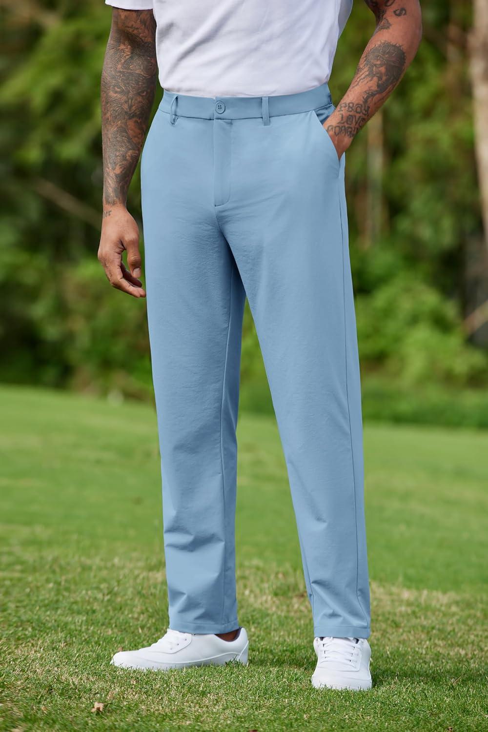 COOFANDY Mens Golf Pants Stretch Work Dress Pants Quick Dry Lightweight Pants Casual Slim Fit Slacks with Pockets(Light Blue)