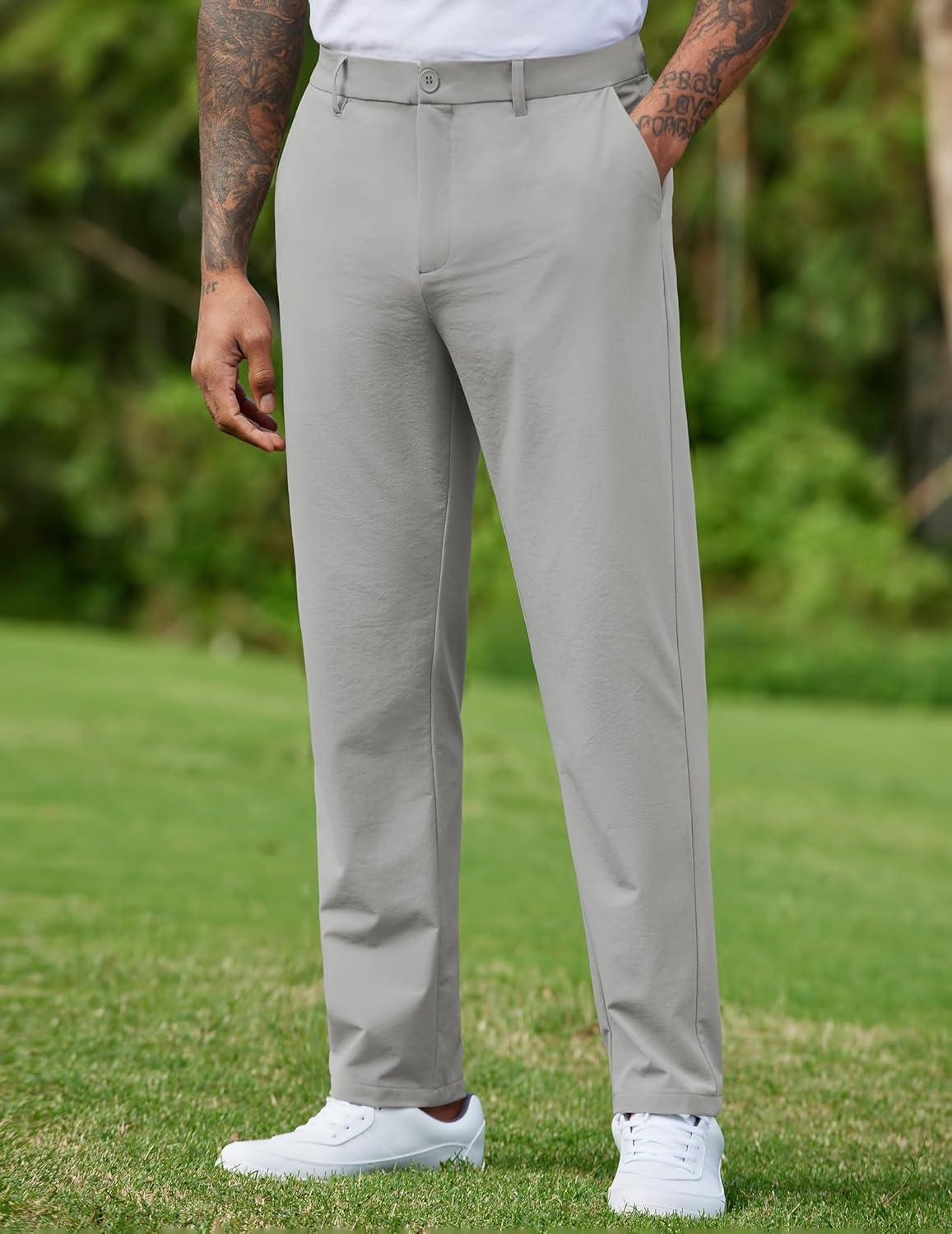 COOFANDY Mens Golf Pants Stretch Work Dress Pants Quick Dry Lightweight Pants Casual Slim Fit Slacks with Pockets(Light Grey)