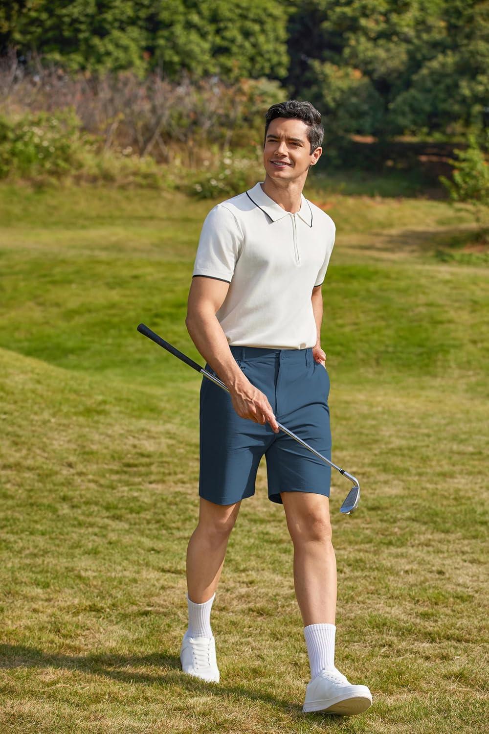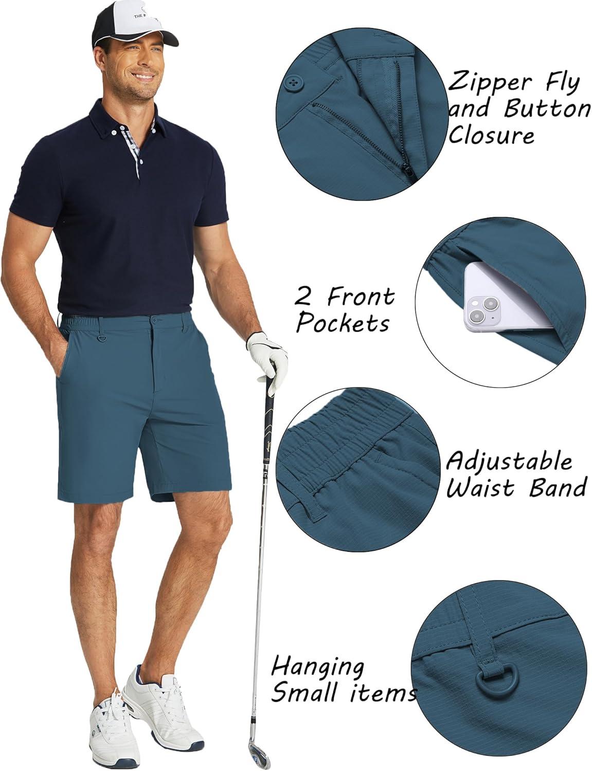 COOFANDY Men’s Golf Shorts 8 Inch Lightweight Quick Dry Casual Dress Shorts Hiking Travel Shorts with Pockets(Blue)
