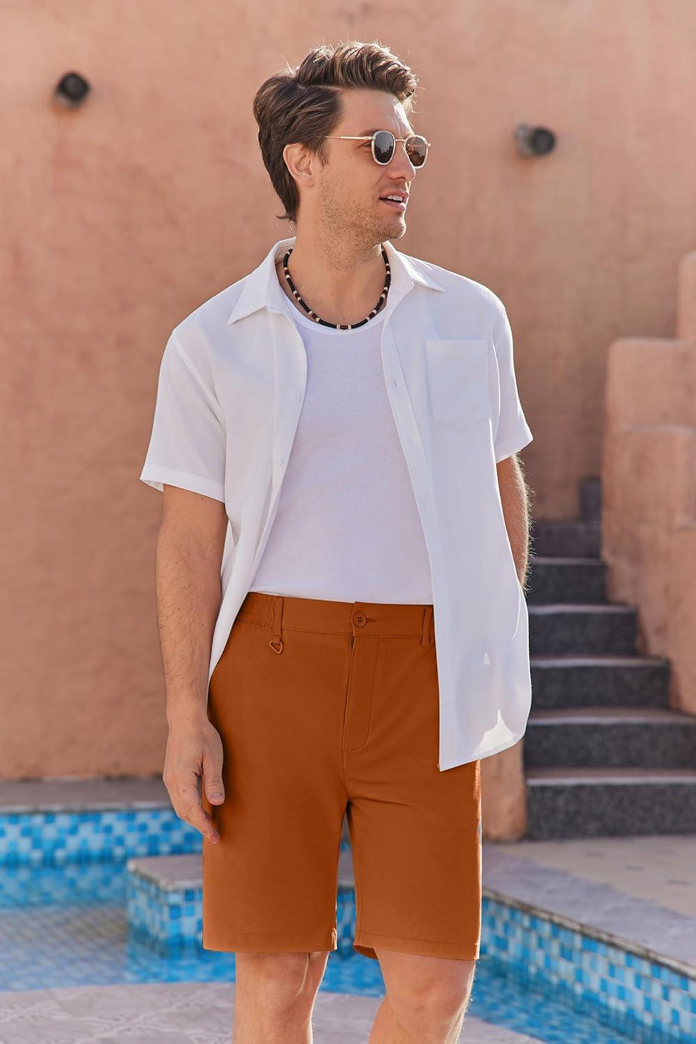 COOFANDY Men’s Golf Shorts 8 Inch Lightweight Quick Dry Casual Dress Shorts Hiking Travel Shorts with Pockets(Brown)