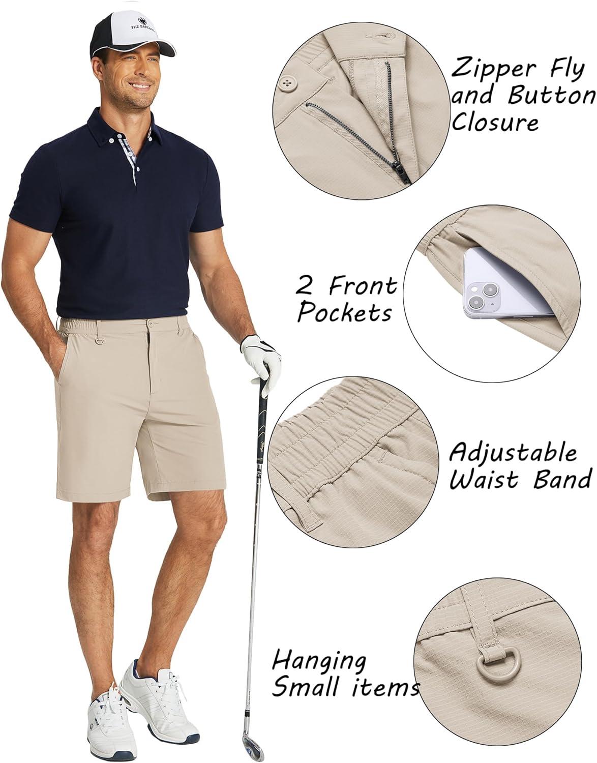 COOFANDY Men’s Golf Shorts 8 Inch Lightweight Quick Dry Casual Dress Shorts Hiking Travel Shorts with Pockets(Light Khaki Brown)